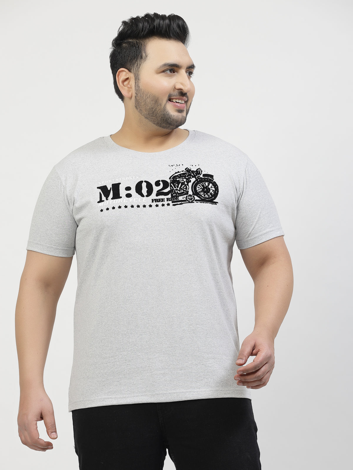 Plus Size Typography Printed Round Neck Short Sleeves Cotton T-shirt