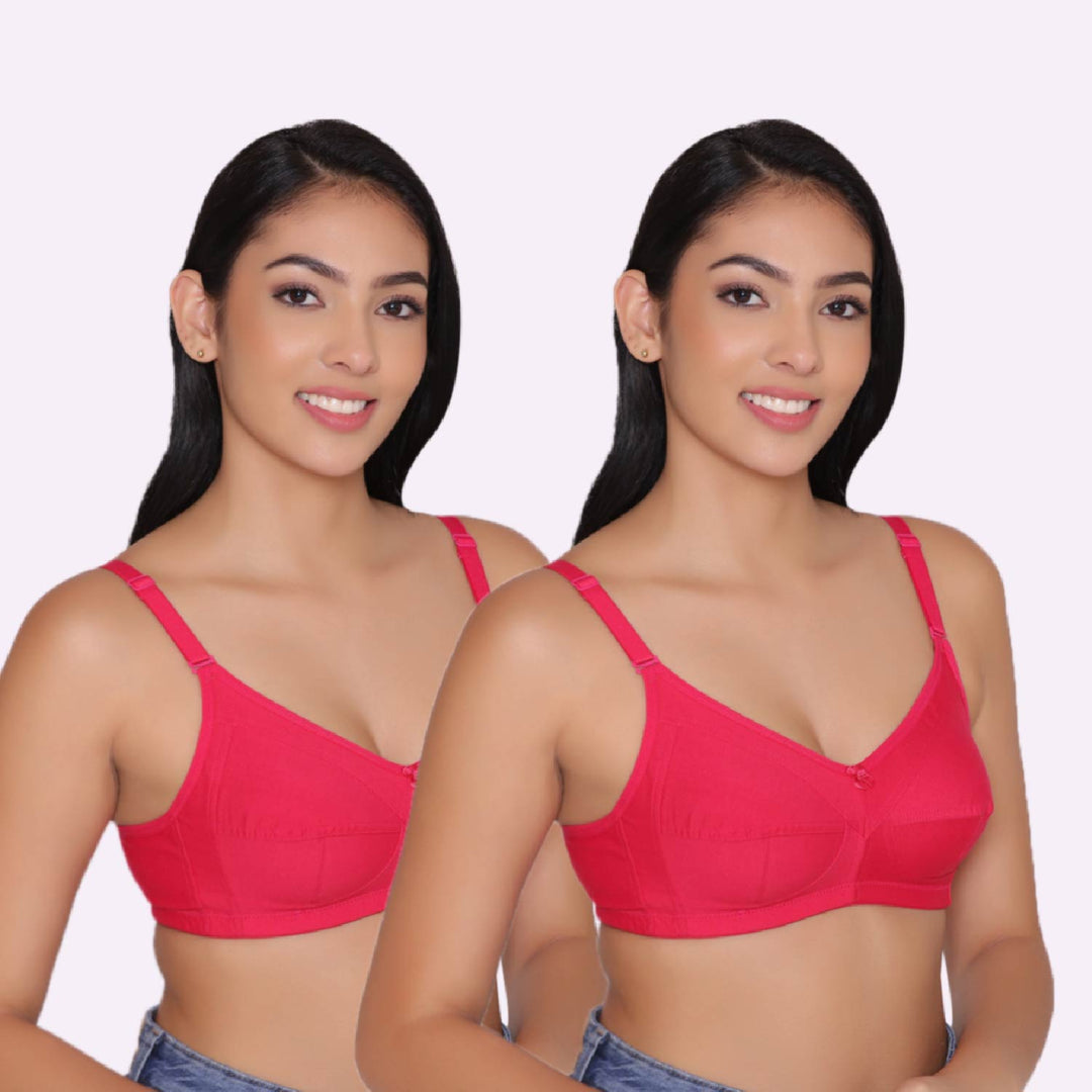 Women's Non Padded Non Wired Full Coverage Bra with No Spillage (Pack of 2)-ELSA