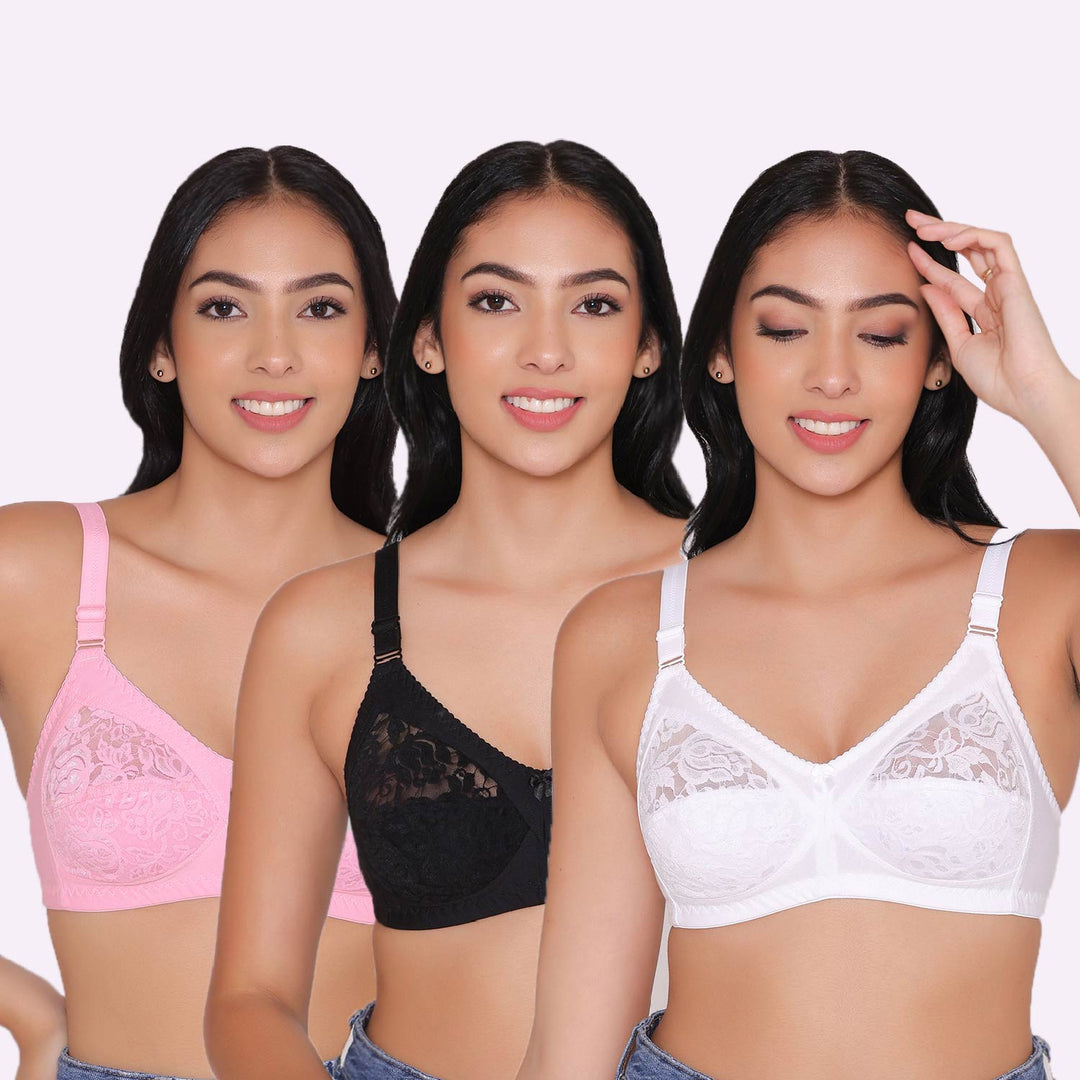 Women's Non Padded Non Wired Full Coverage Bra with No Spillage (Pack of 3)-ELSA