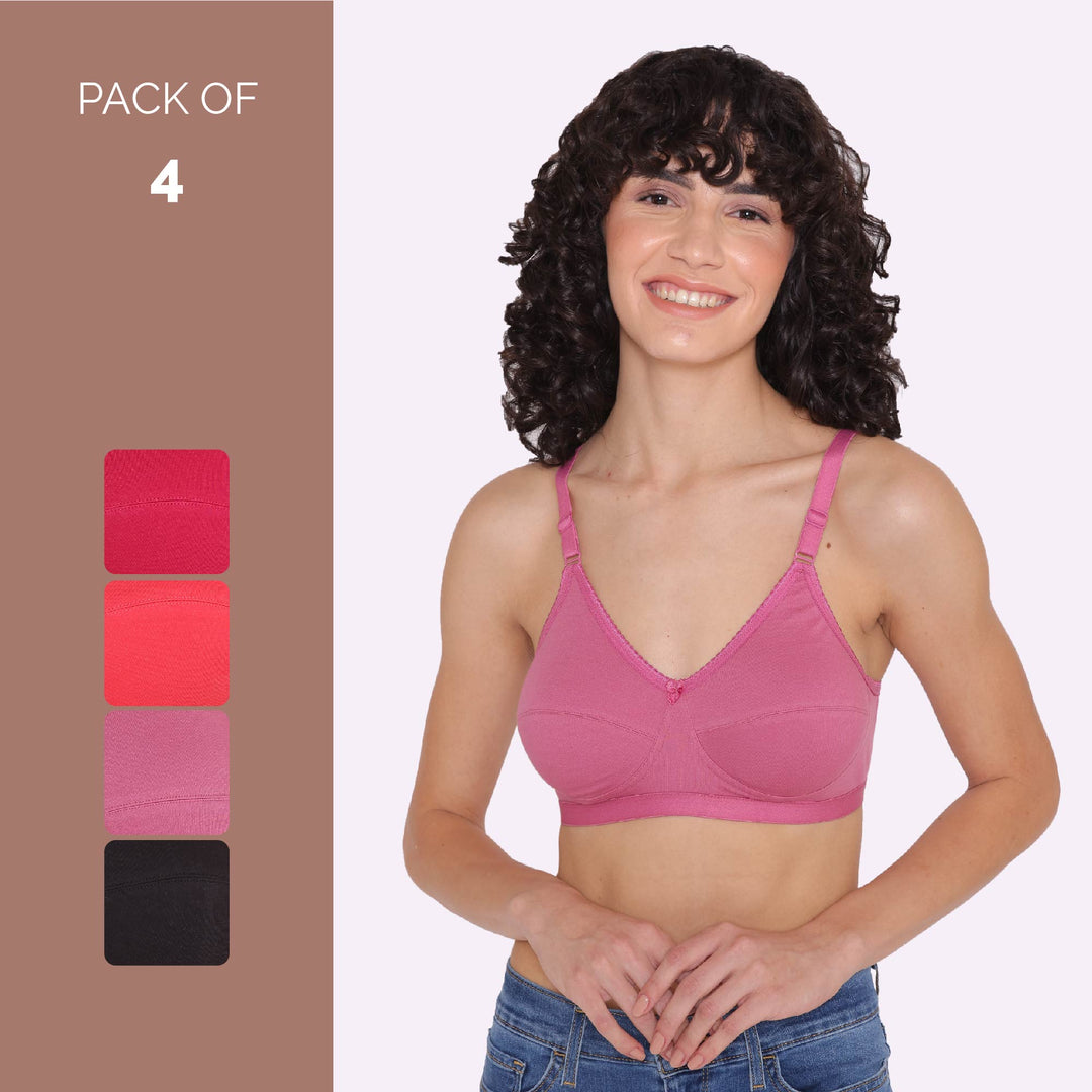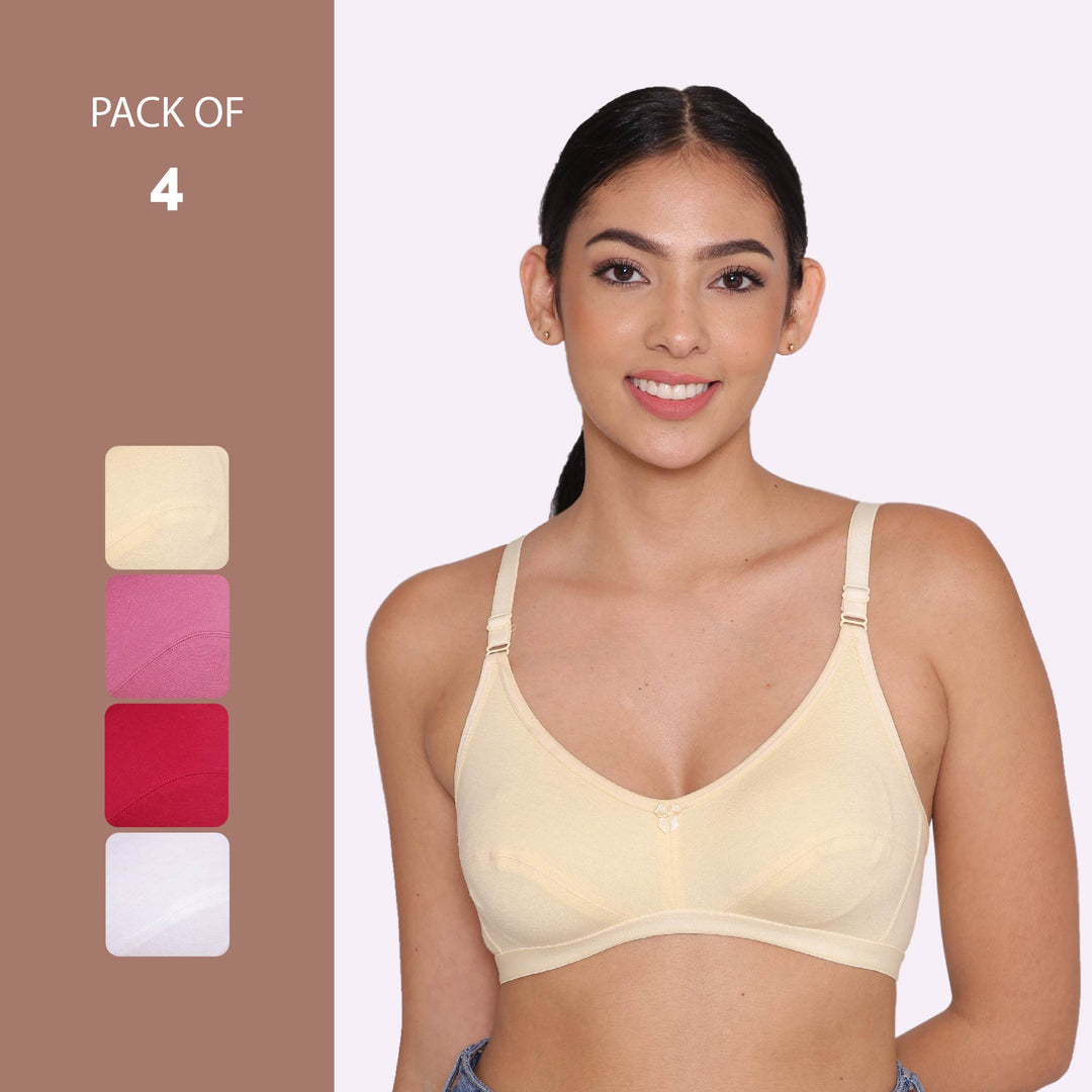 Women's Non Padded Non-Wired Regular Bra-RIO Combo of 4