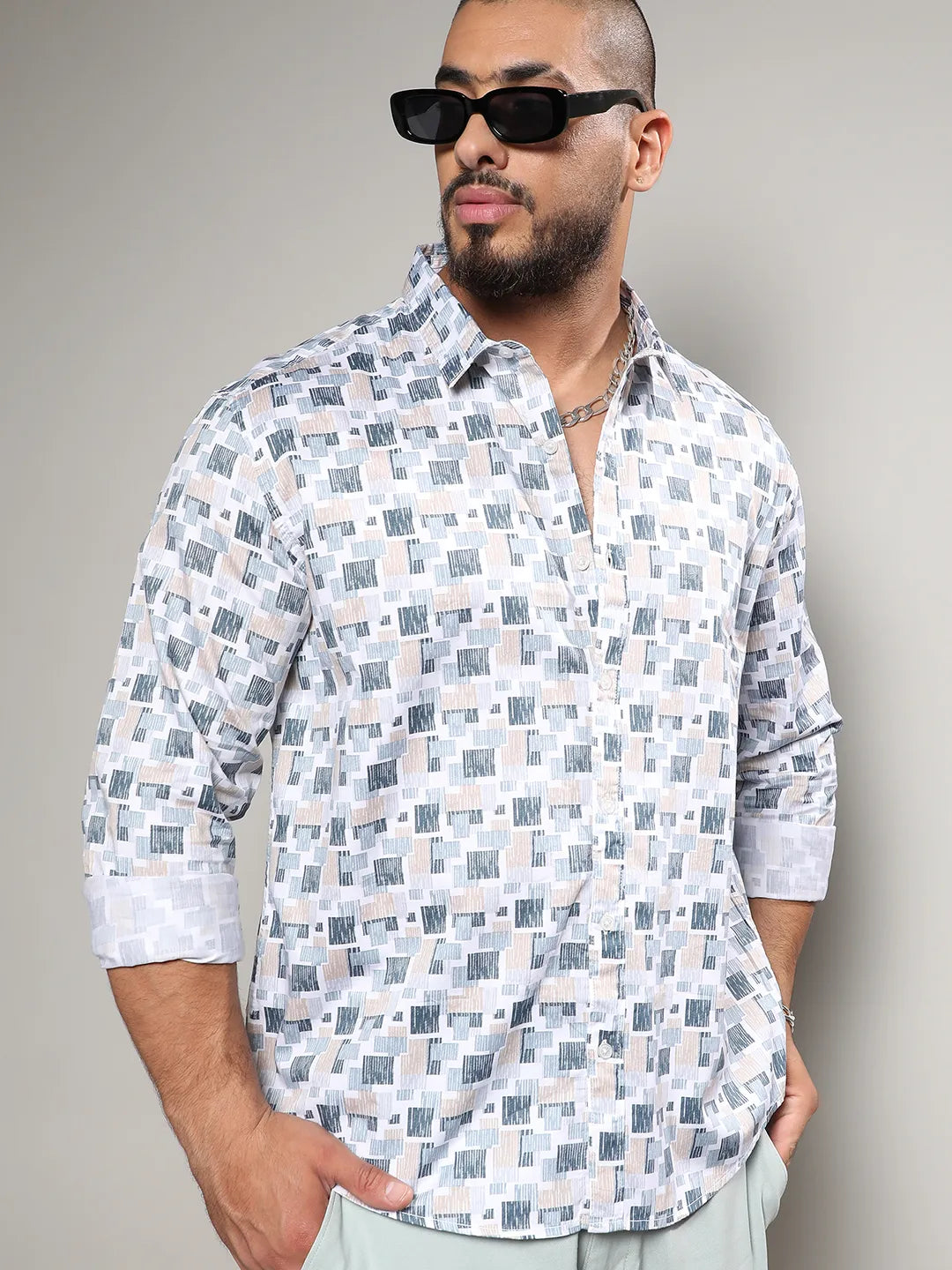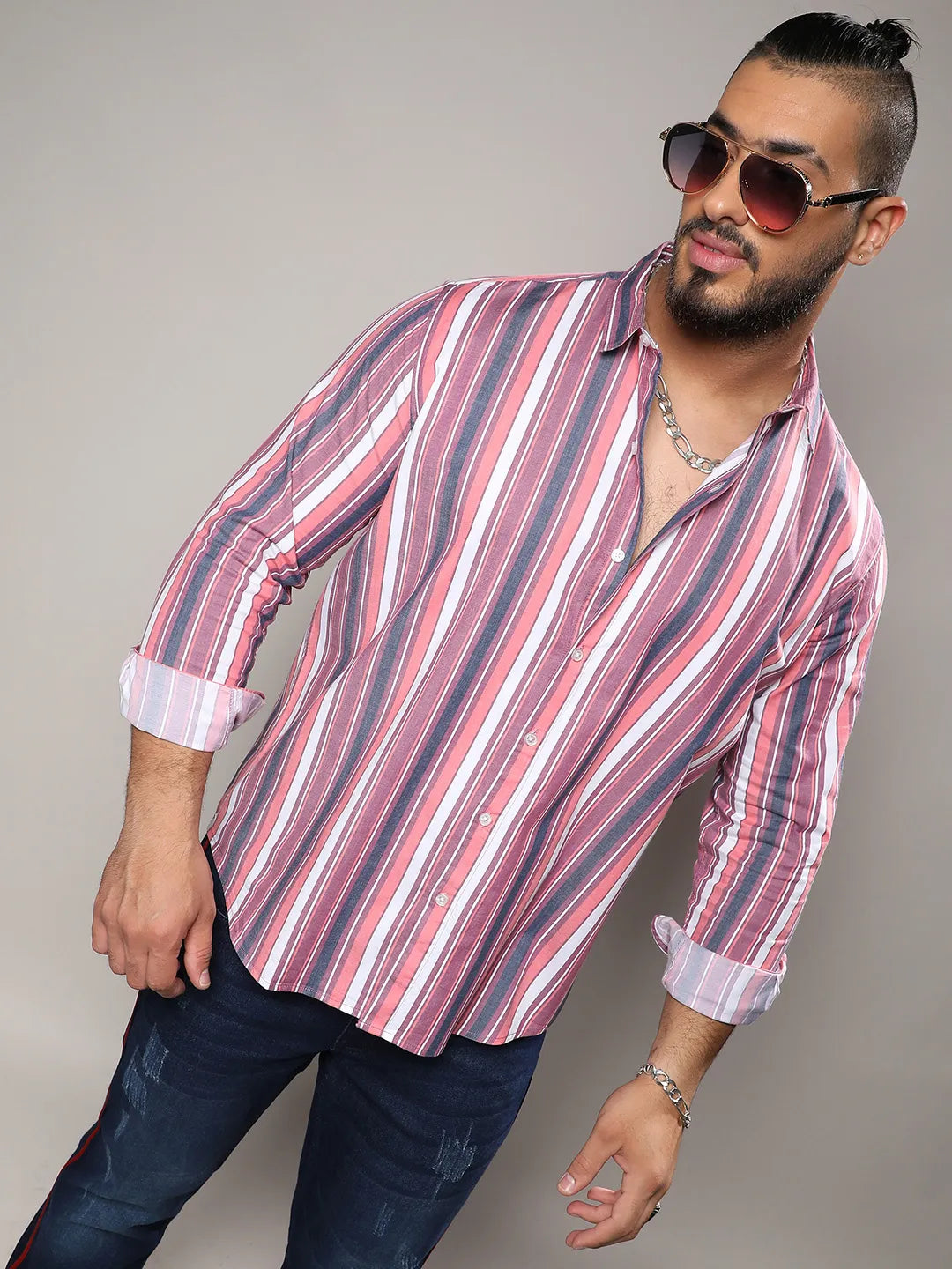Blush Pink & Dark Grey Faded Barcode Striped Shirt