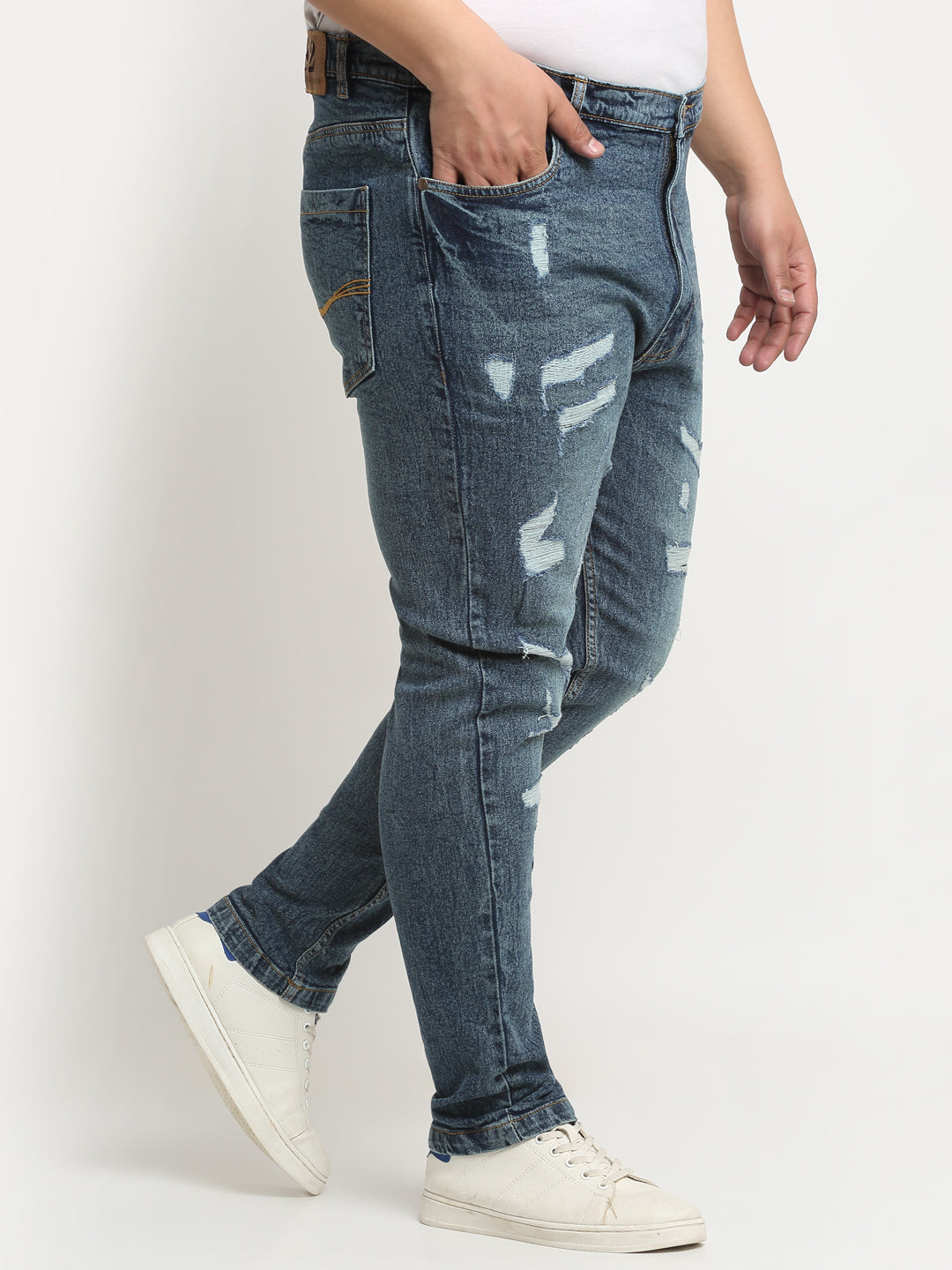 Plus Size Men Blue Comfort Highly Distressed Light Fade Non Stretchable Jeans