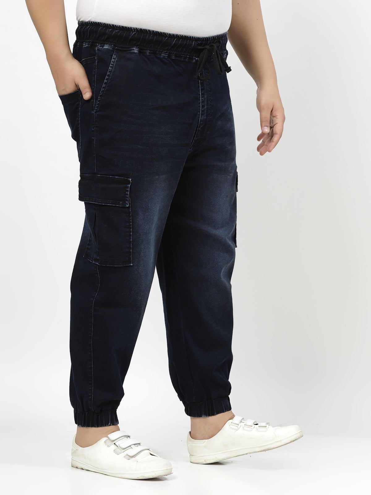 Plus Size Men Comfort Jogger Low Distress Light Fade Stretchable Jeans