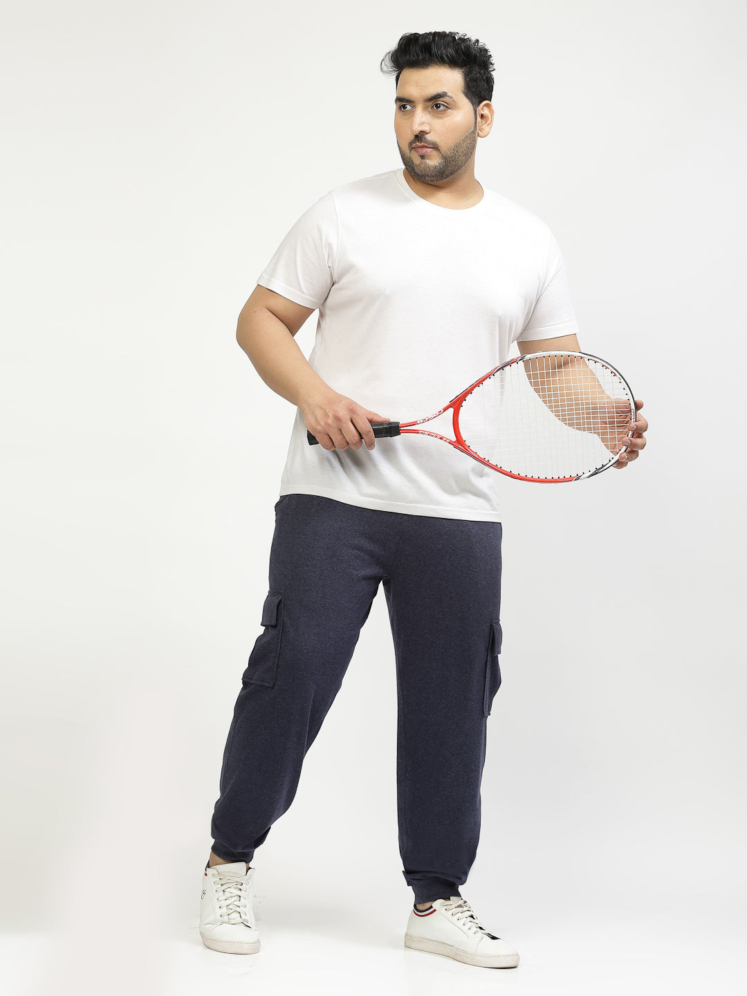 Plus Size Men Navy Blue Mid-Rise Cotton Joggers