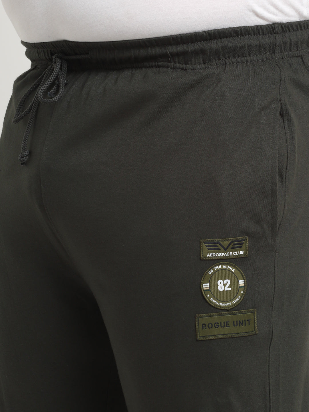 Olive green and white solid with printed details mid-rise straight fit plus size track pant, has an elasticated waistband with a drawstring closure, two pockets