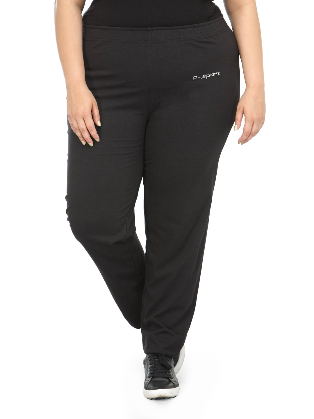 Plus Size Women Black Solid Straight-Fit Track Pants