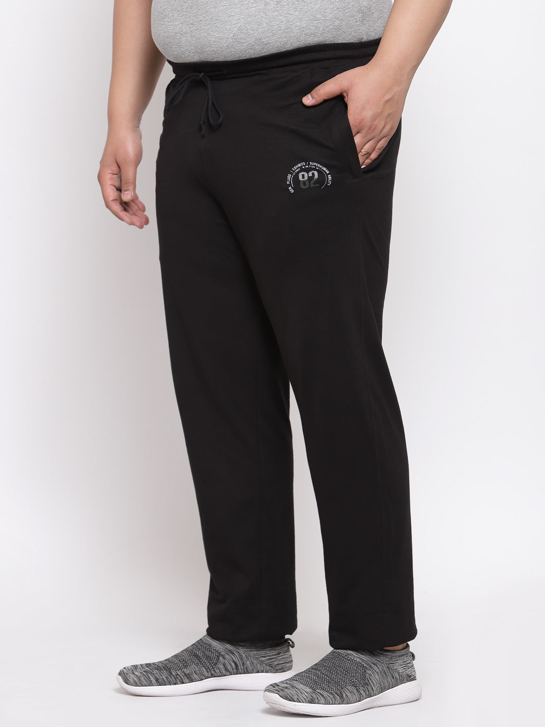 Plus Size Men Printed Details Straight Fit Cotton Track Pants