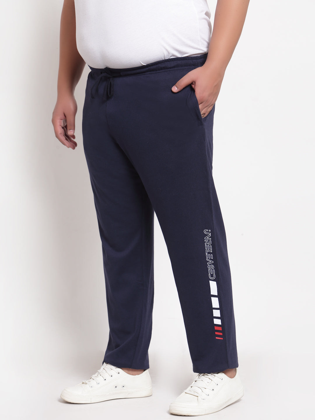 Plus Size Men Navy Blue Solid Straight-Fit Cotton Track Pants