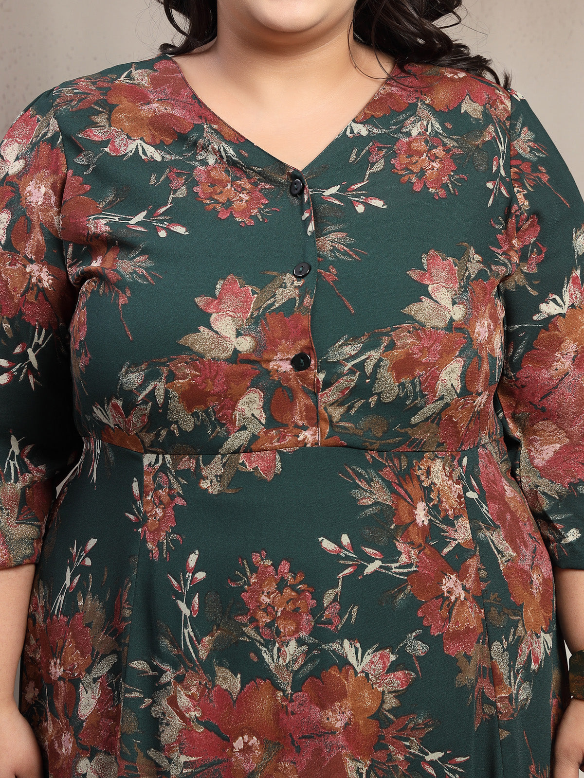 Plus Size Floral Print A-Line Midi Dress