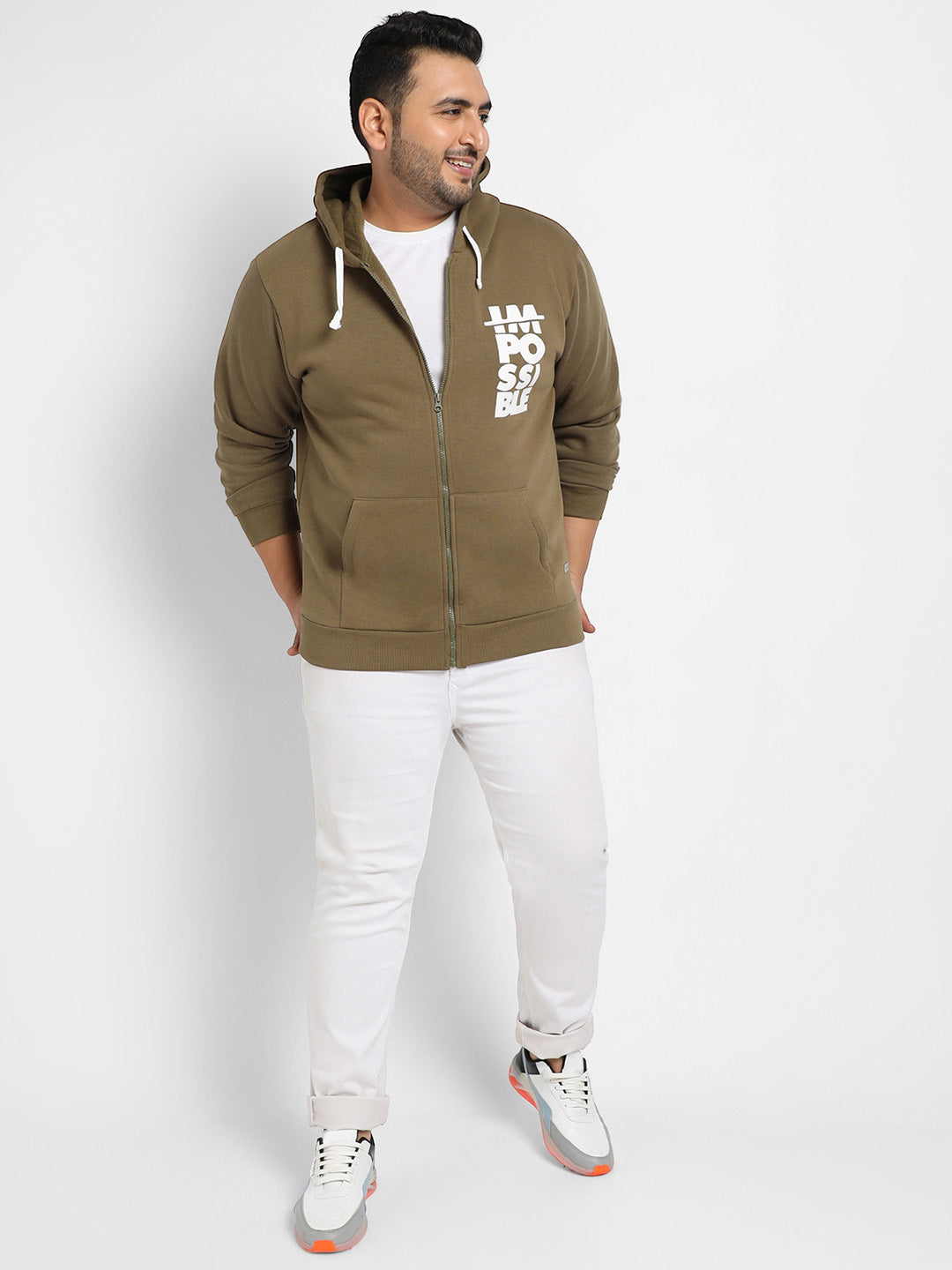 Olive Green Zip-Front Impossible Hoodie With Contrast Drawstring – Parfait Pluss