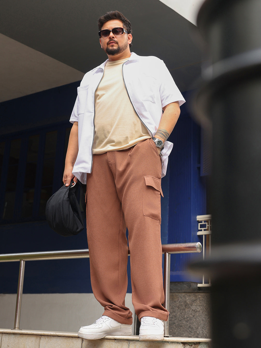 Pleated-Textured Cargo Trousers – Parfait Pluss