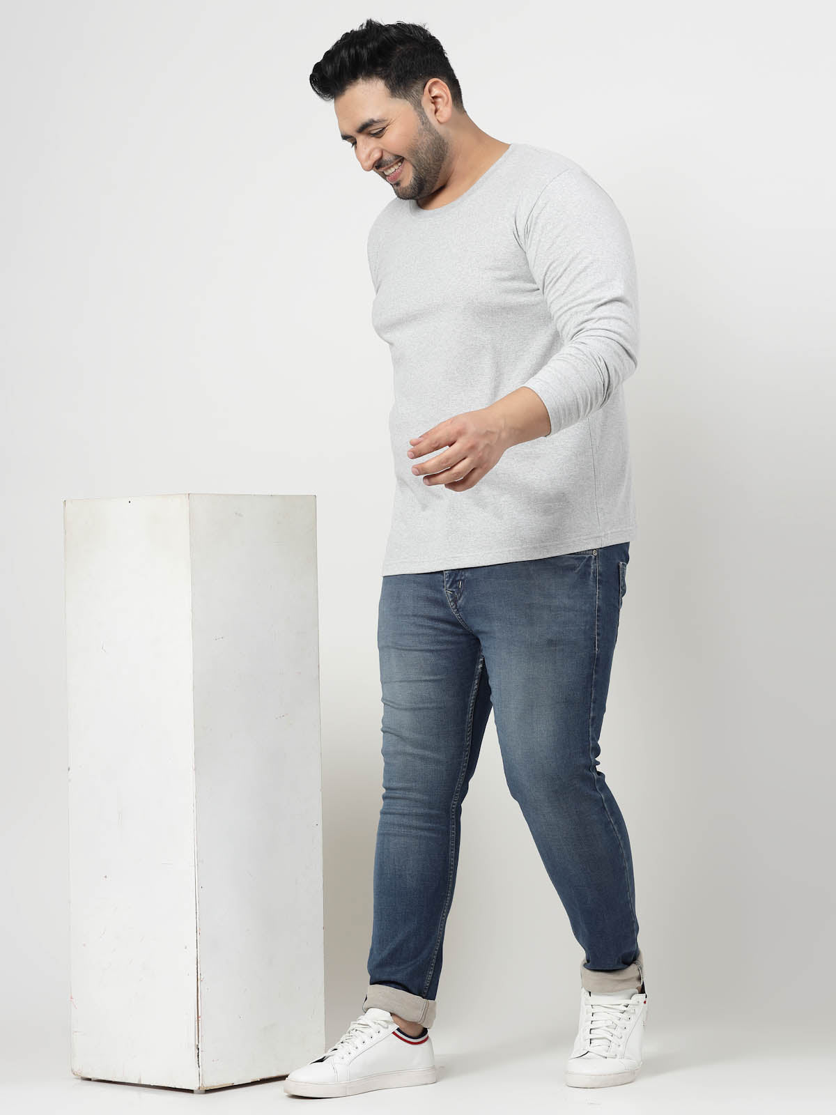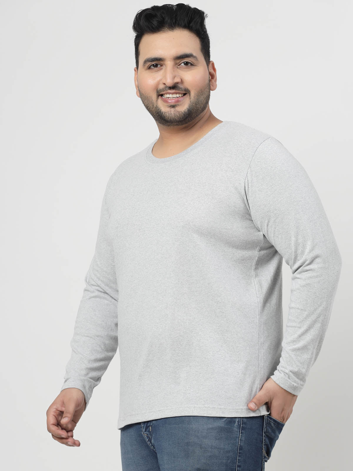 Plus Size Grey Regular Fit Pure Cotton T-shirt