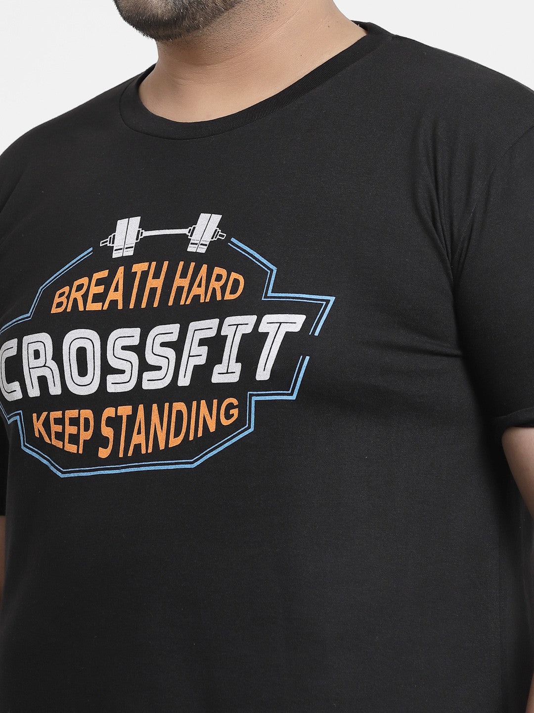 Plus Size Men Black White Printed Pure Cotton T-shirt