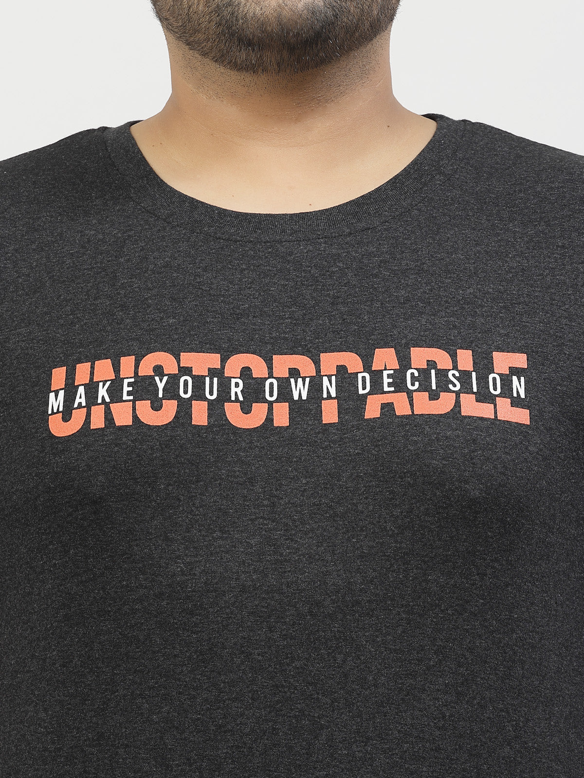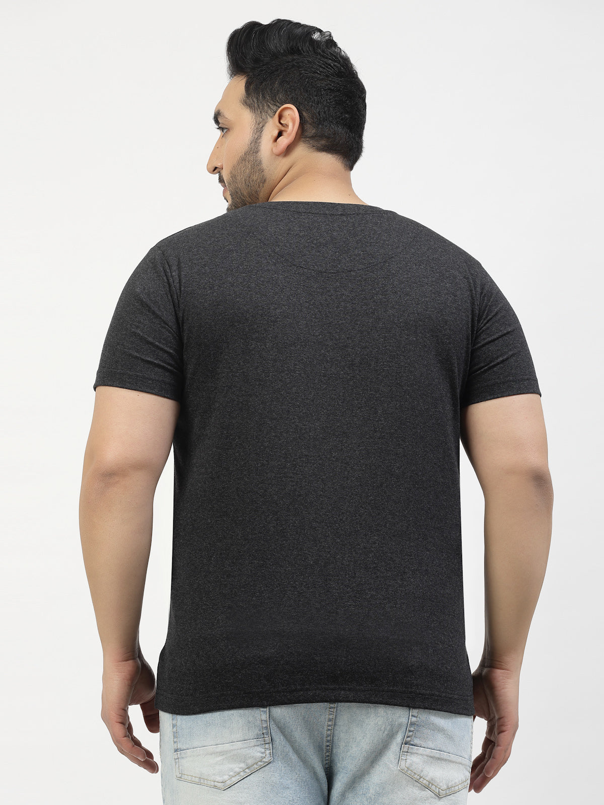Plus Size Men Grey & Yellow Pure Cotton T-shirt