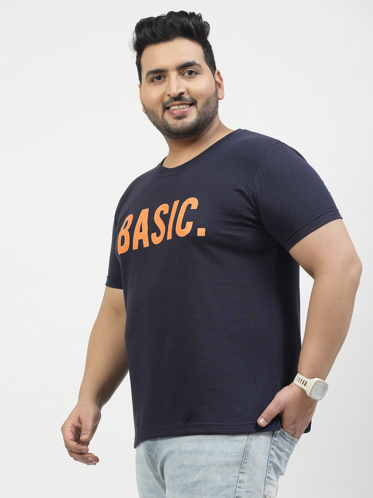 Plus Size Men Navy Blue Printed Pure Cotton T-shirt