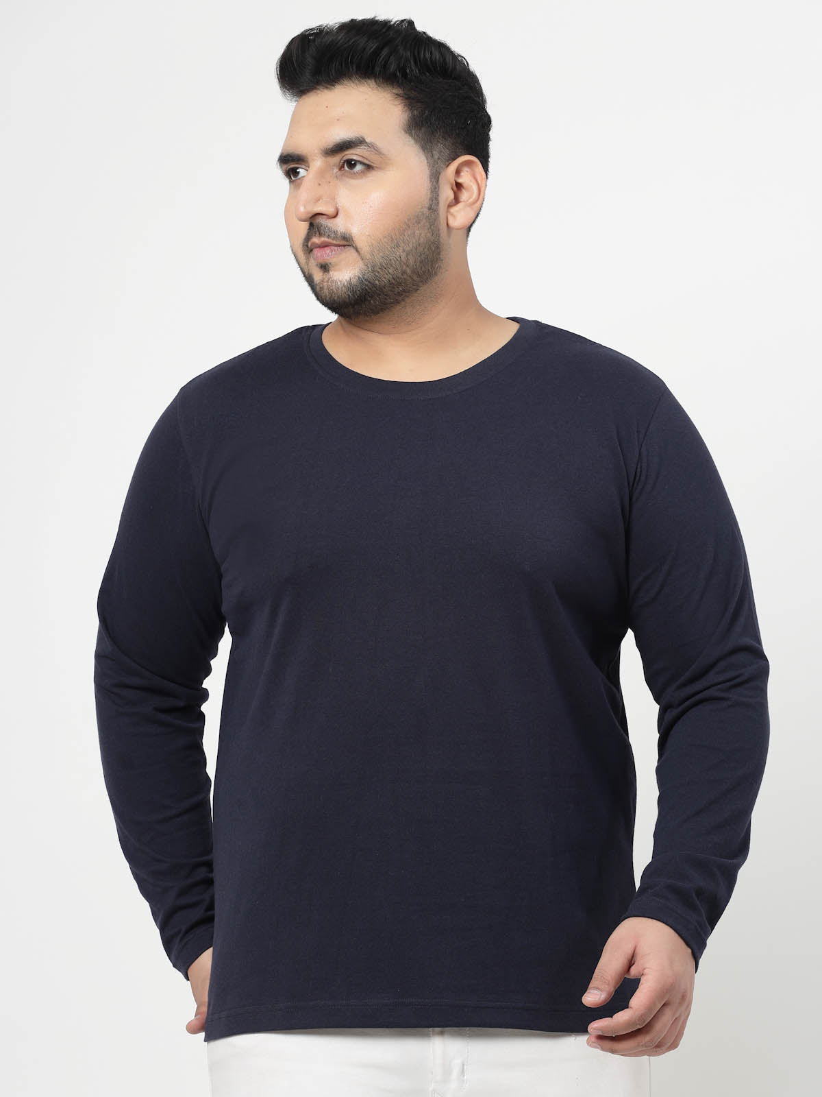 Plus Size Men Navy Blue Solid Pure Cotton T-shirt