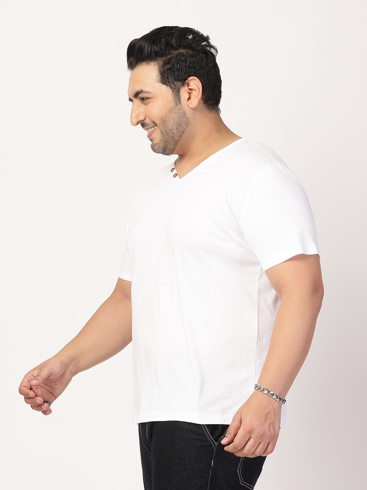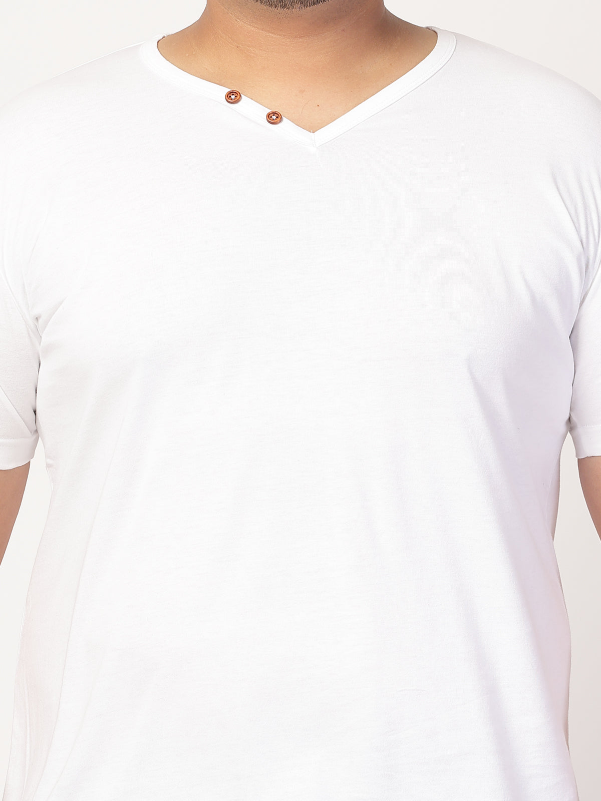 Plus Size Men Solid V-Neck Cotton T-shirt
