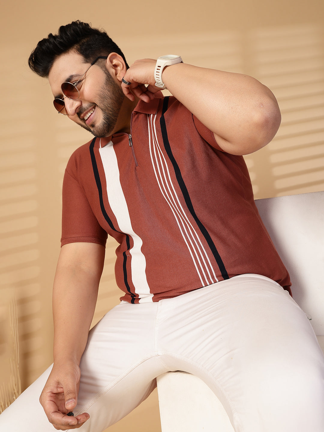 Plus Size Men Striped Polo Collar Cotton T-shirt
