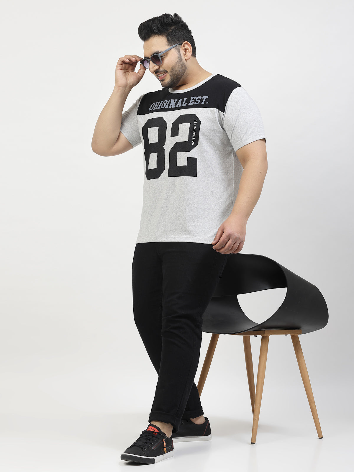 Plus Size Varsity Printed Round Neck Short Sleeves Cotton T-shirt