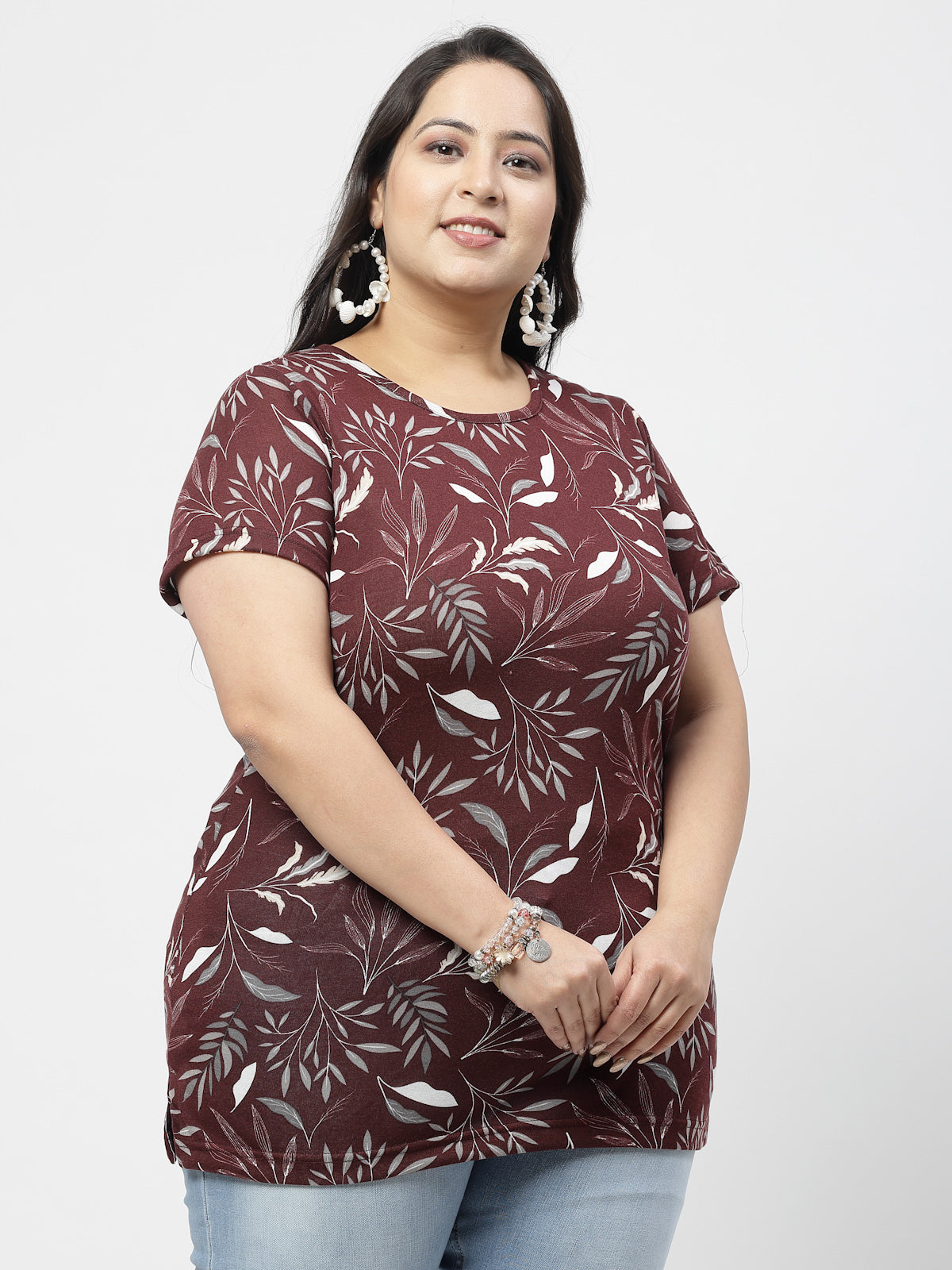 Plus Size Women Floral Printed Tropical Pockets T-shirt