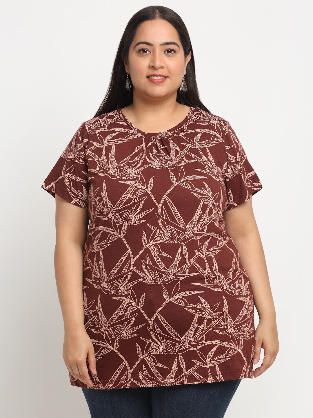 Plus Size Ethnic Motifs Printed Longline Top