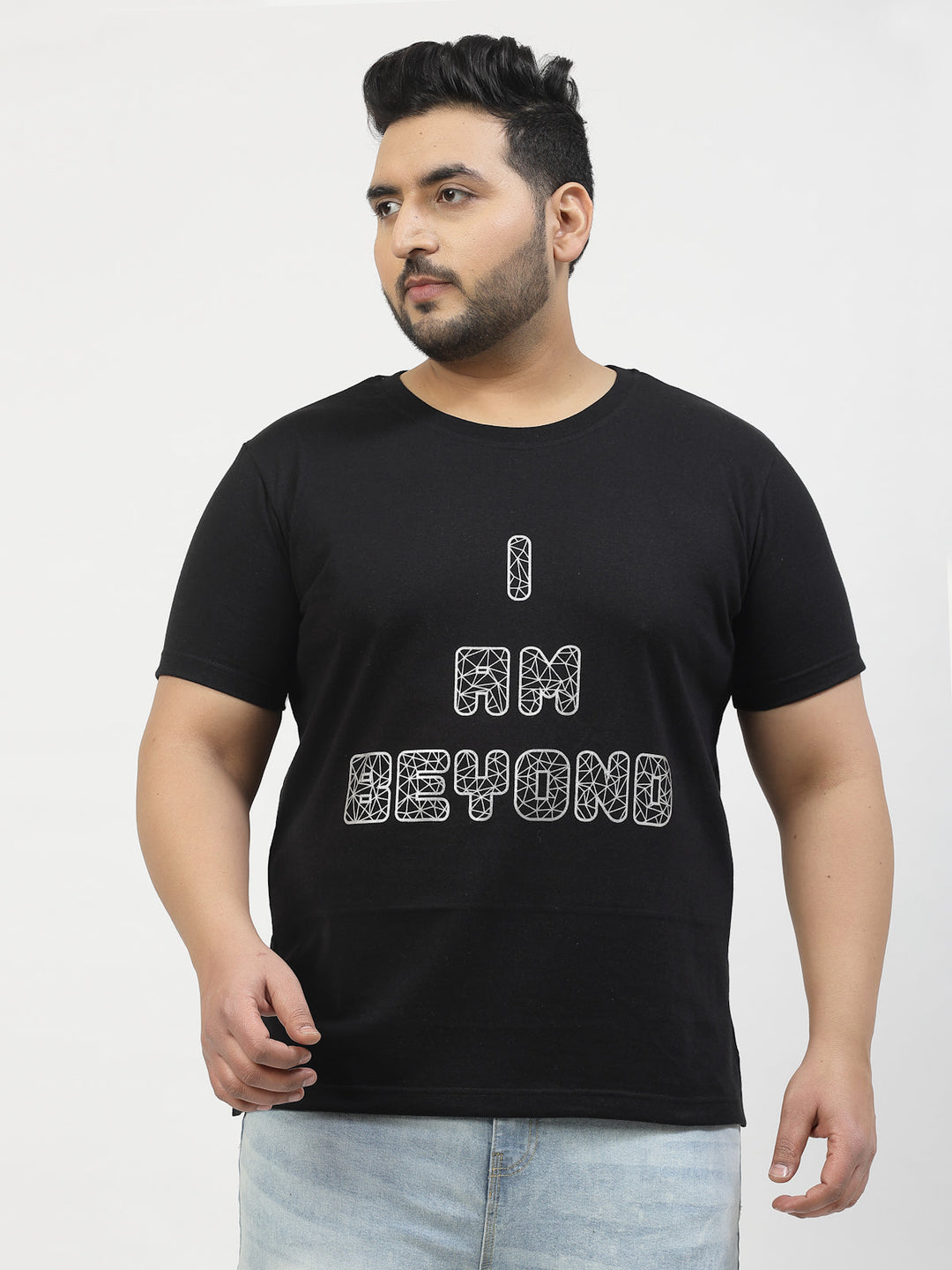 Plus Size Men Black Typography Printed T-shirt