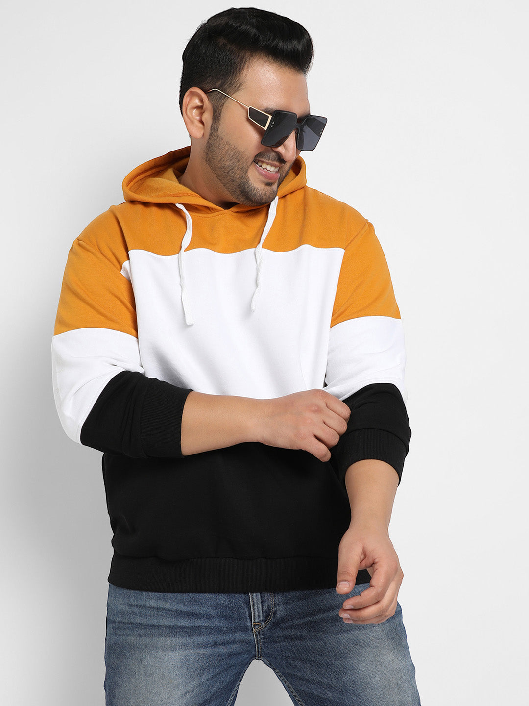 Multicolour Contrast Panel Hoodie With Ribbed Hem