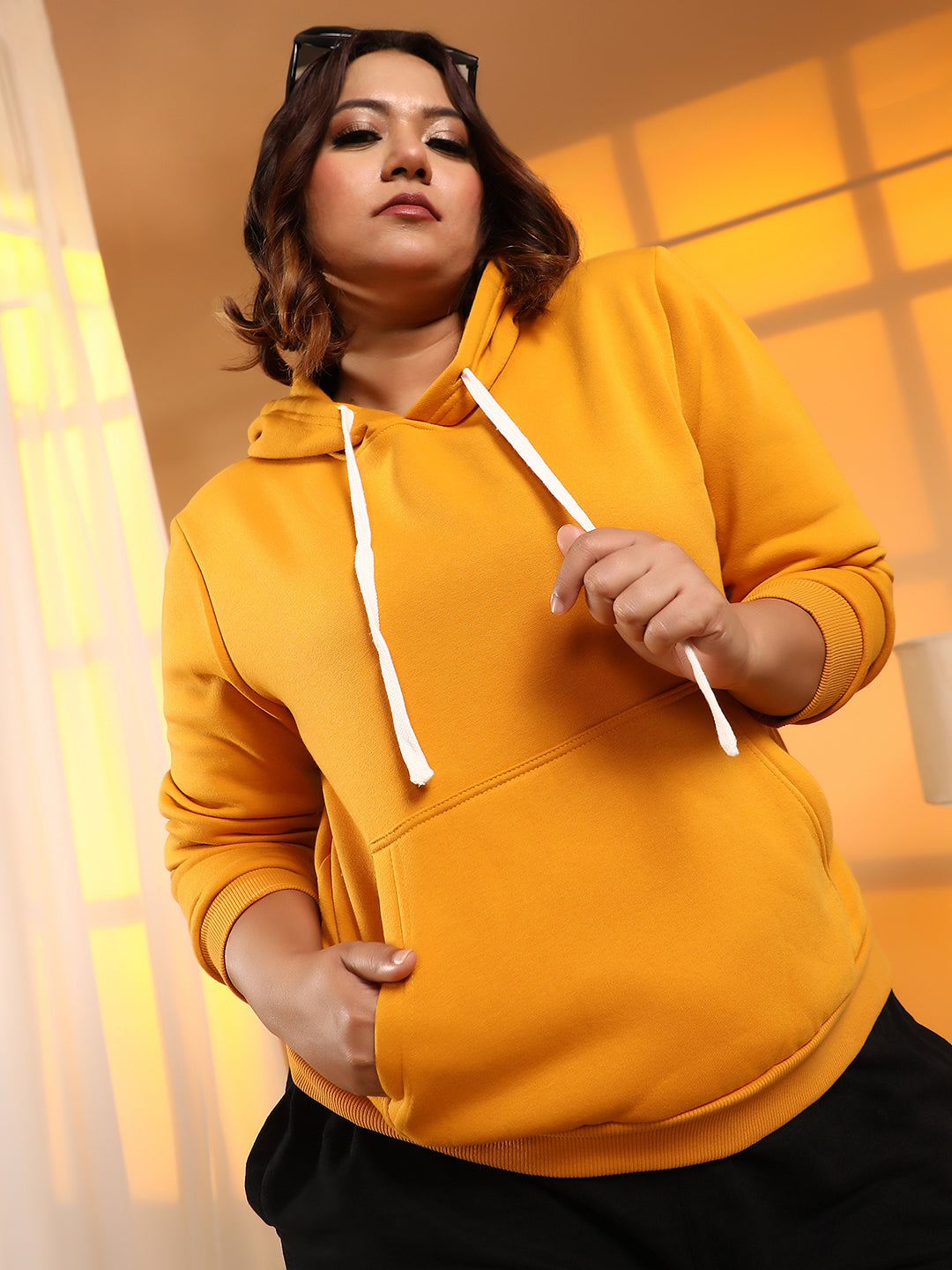 Plus Size Mustard Floral Printed Mandarin Collar Long Sleeves Longline Tops