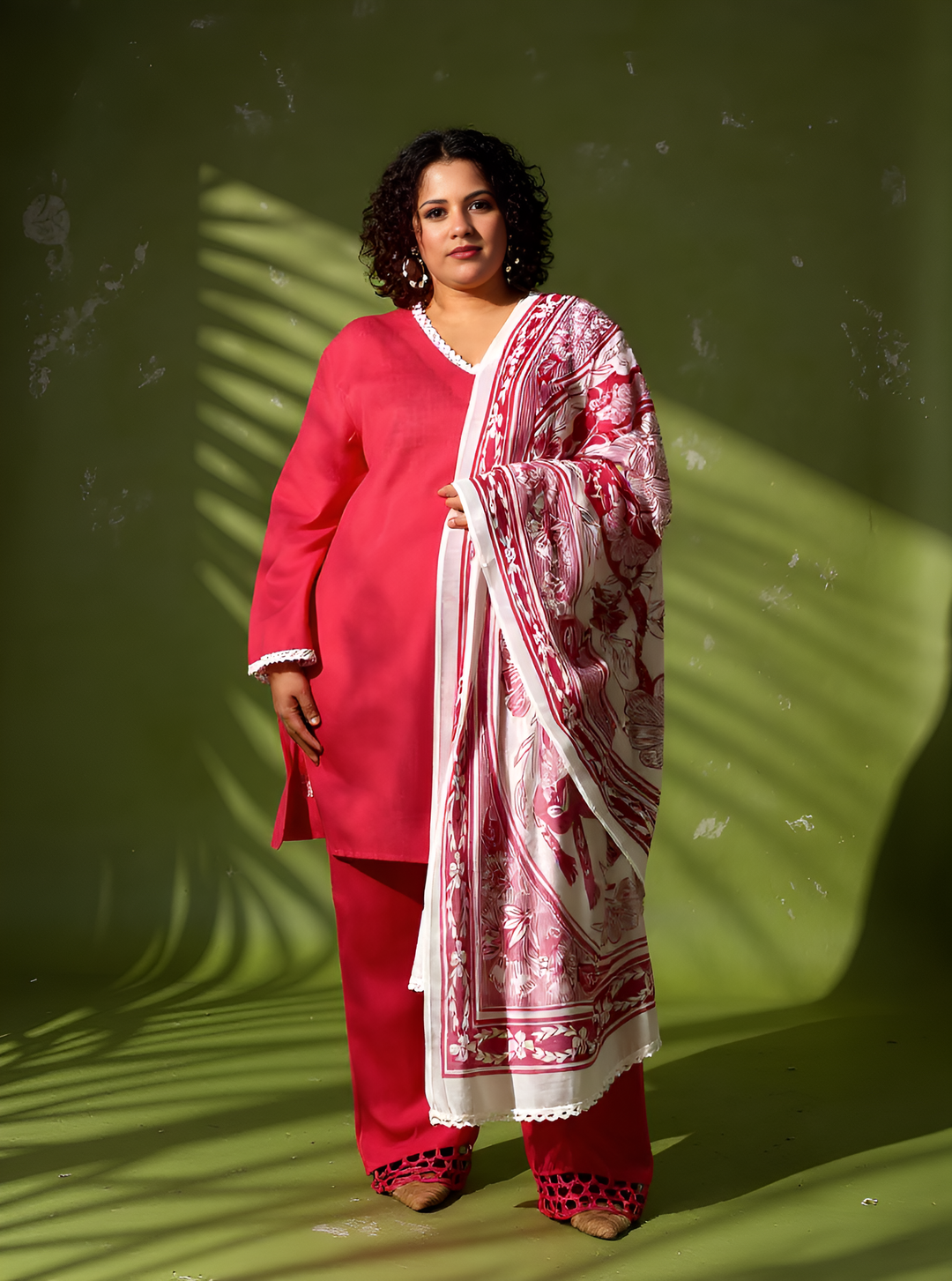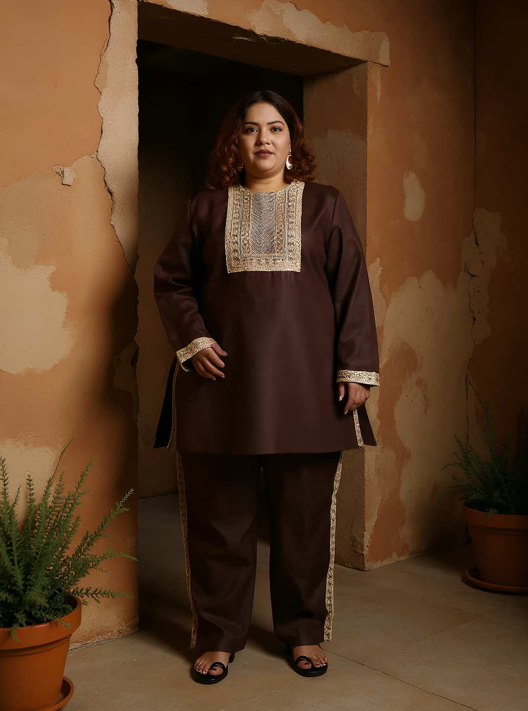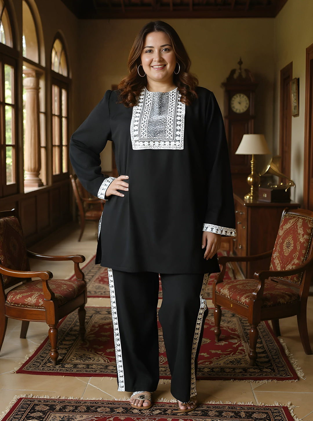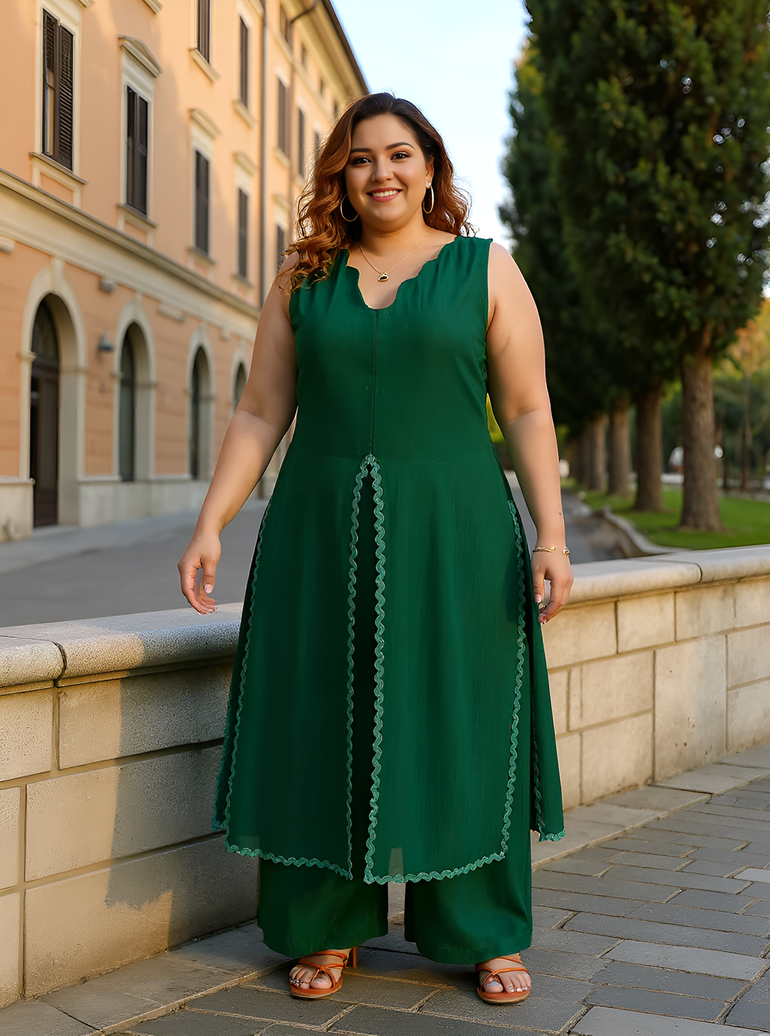 Plus Size Mandarin Collar Pure Cotton Straight Kurta With Pyjama