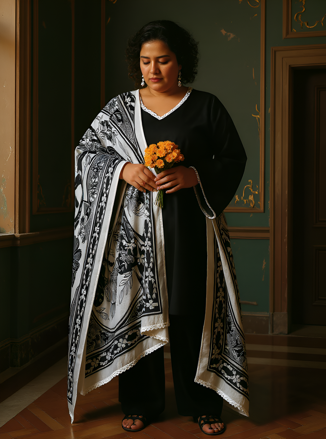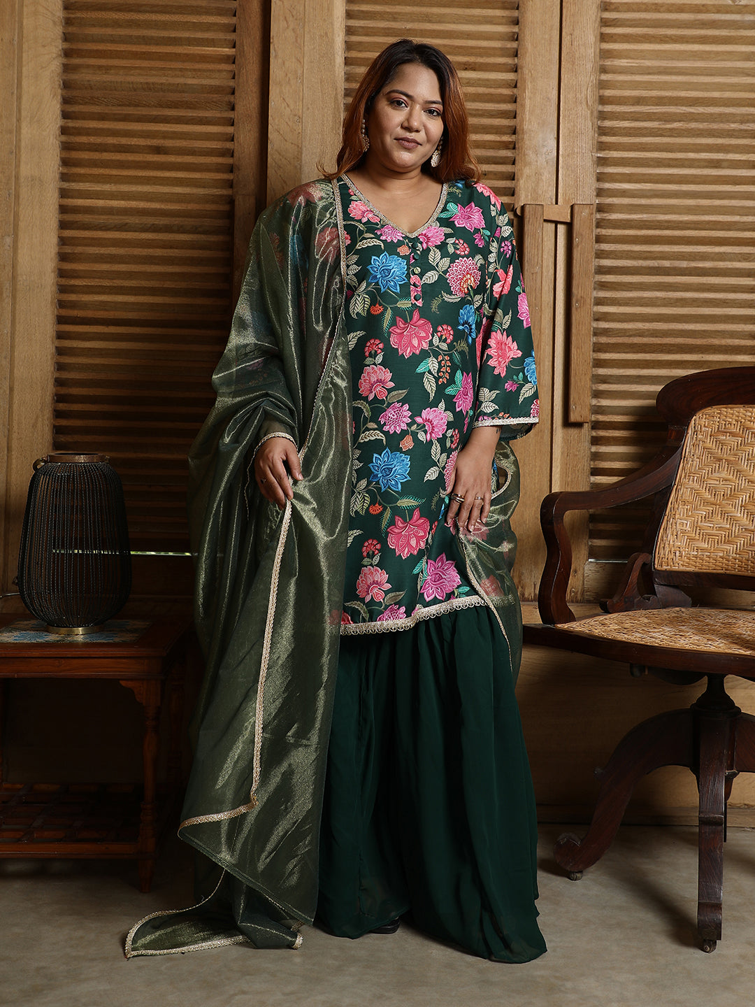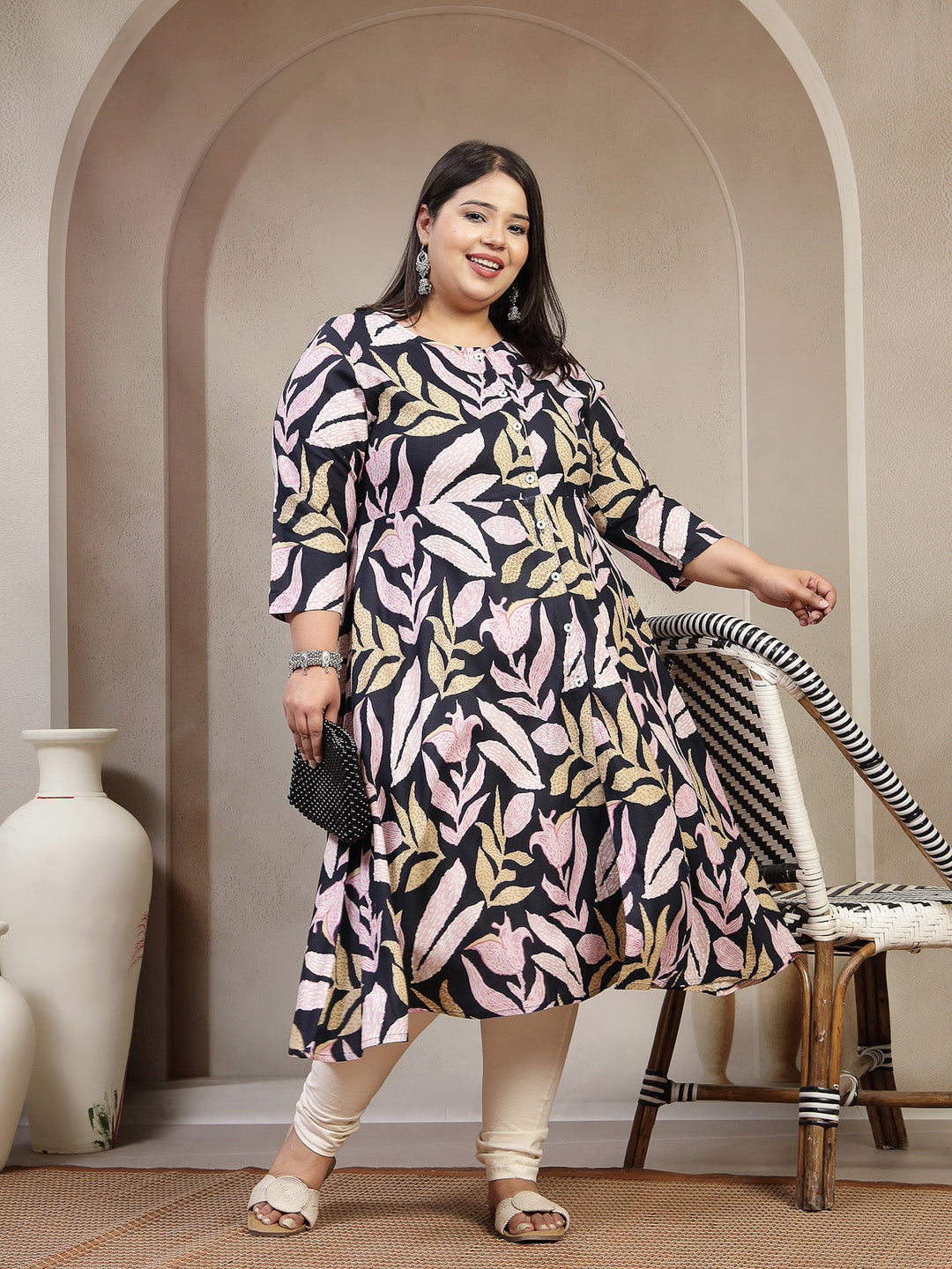 Plus Size Dk Blue Floral Printed Viscose Rayon kurta