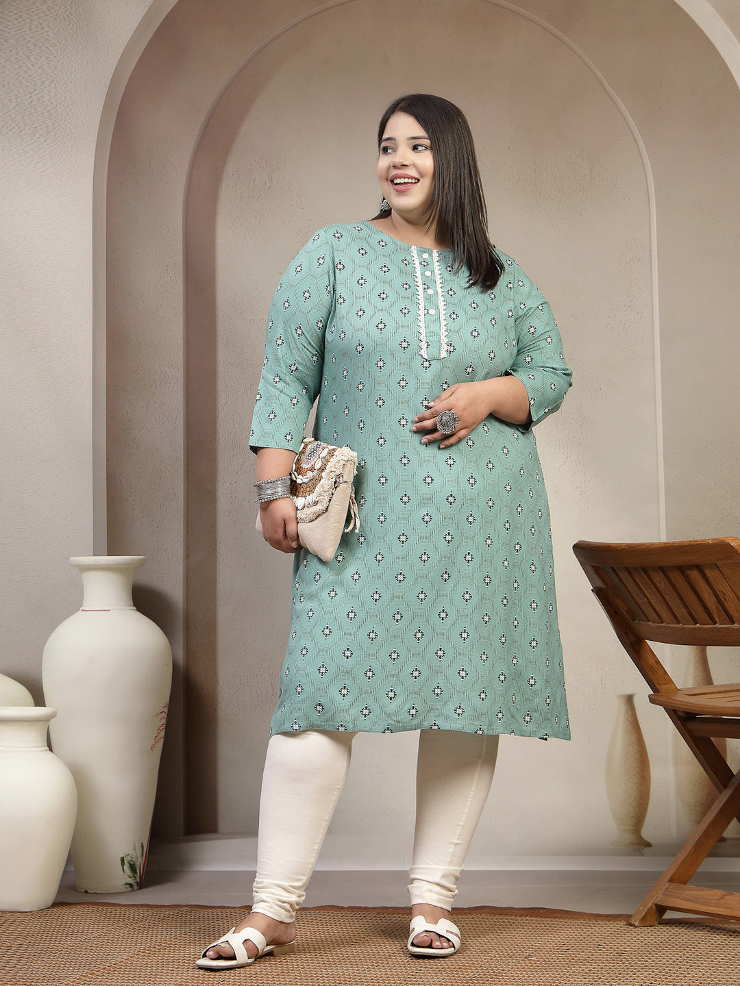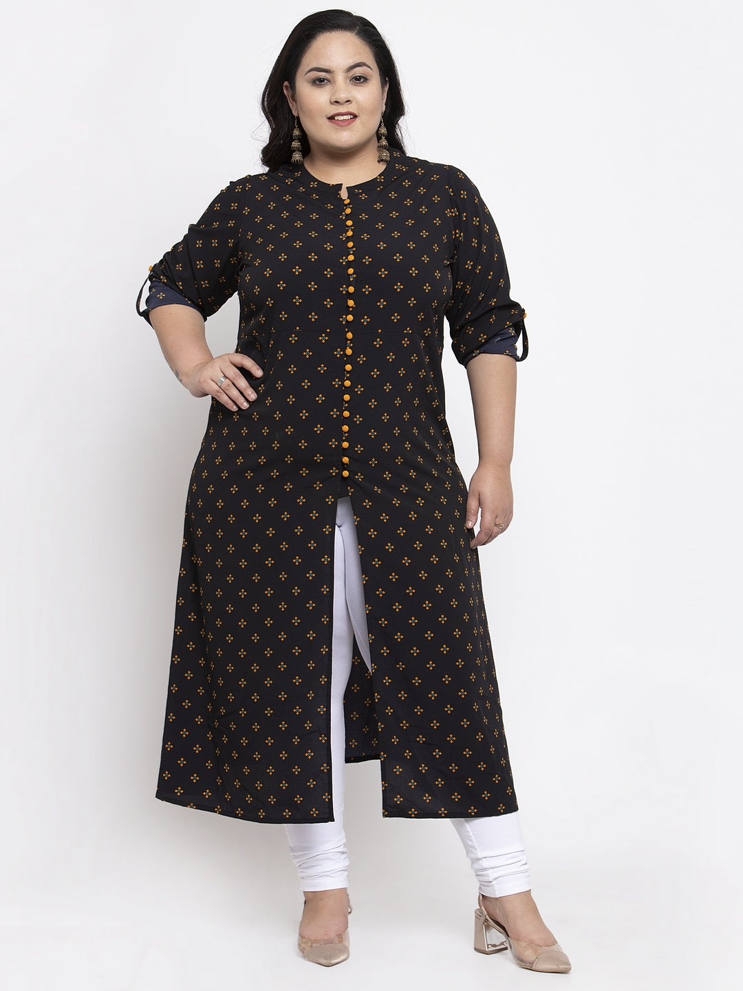 Plus Size Ethnic Motifs Printed Mandarin Collar A-Line Regular Kurta