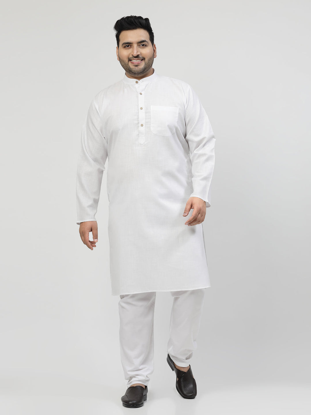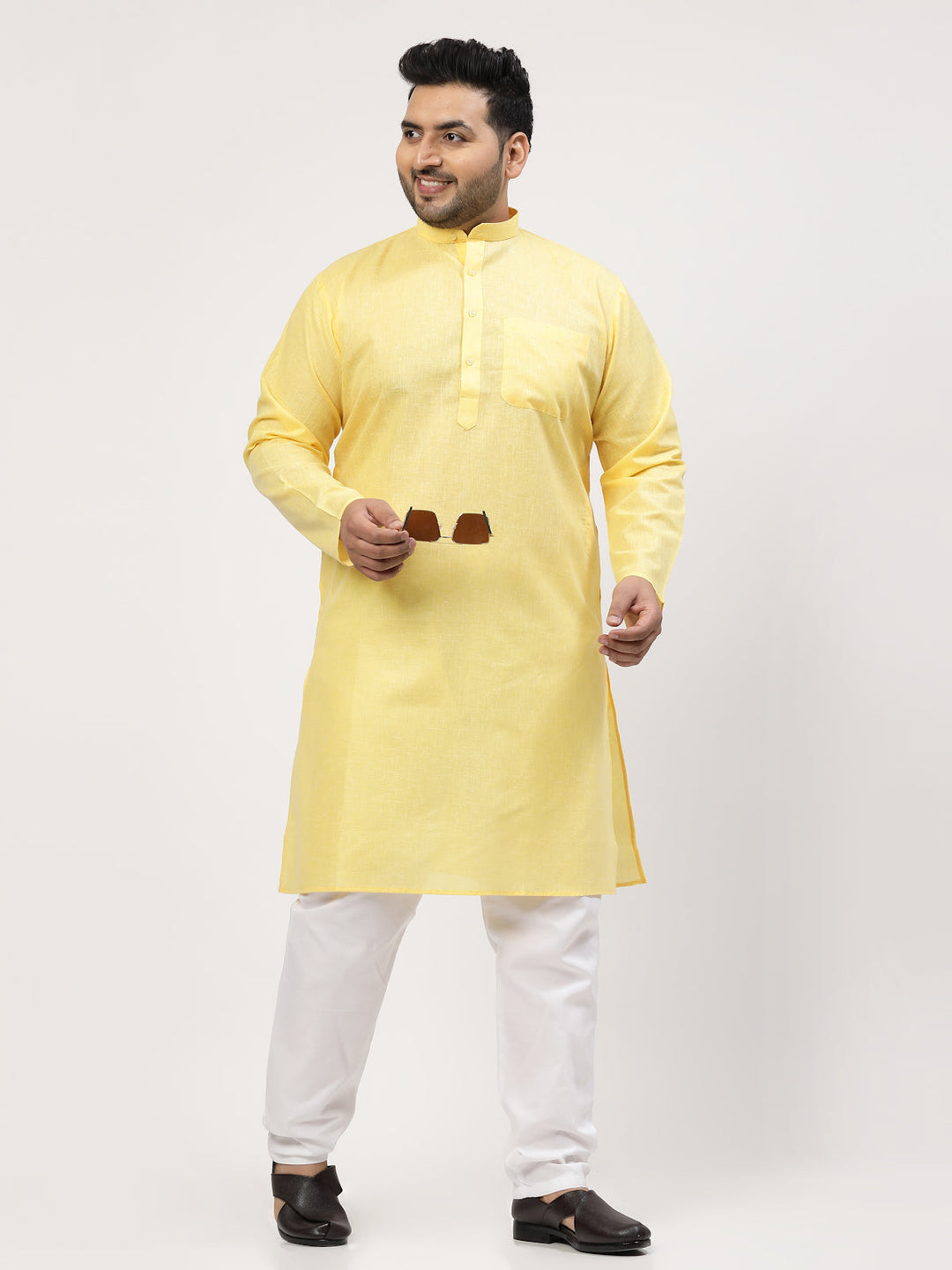 Plus Size Men Mustard Yellow White Solid Kurta with Pyjamas
