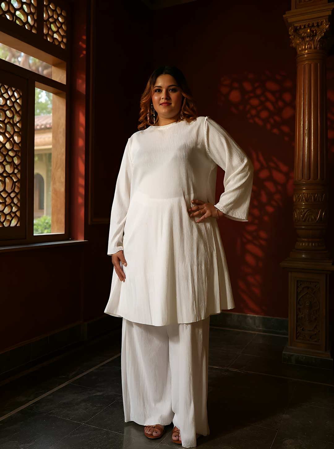 Plus Size Blue & White Regular Pure Cotton Kurta with Pyjamas