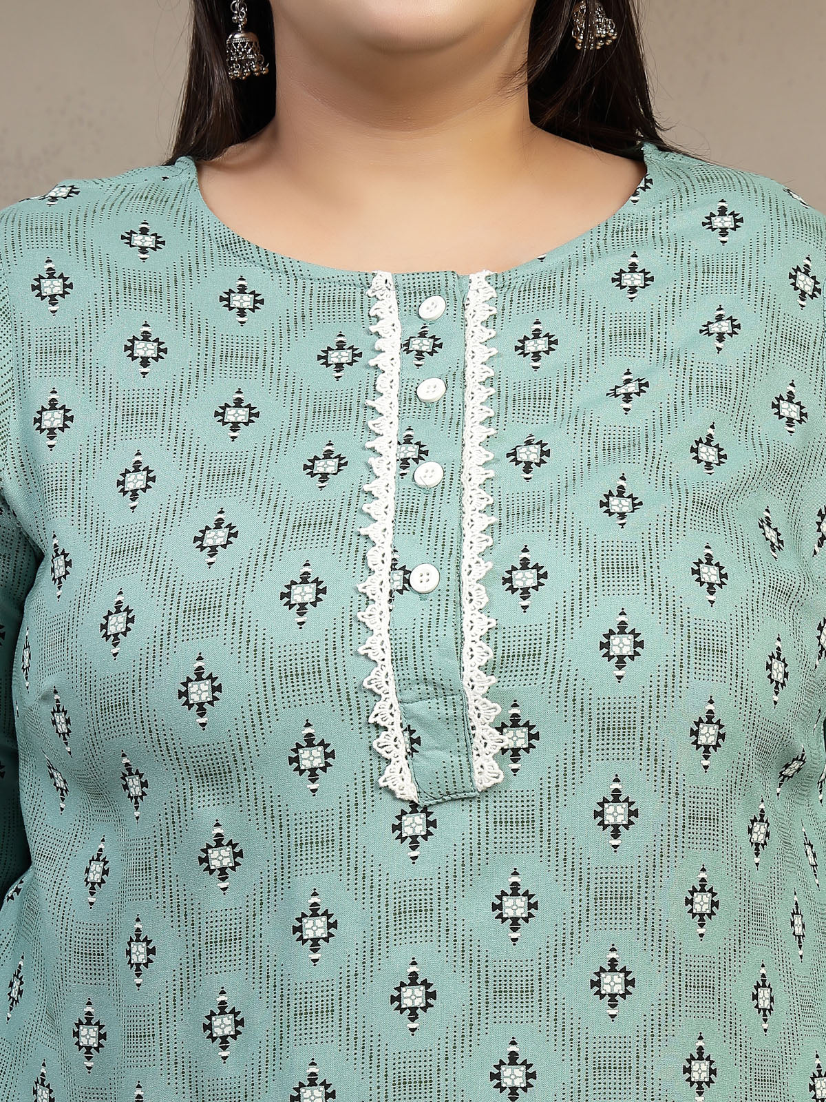 Plus Size Abstract Printed Thread Work Kurta