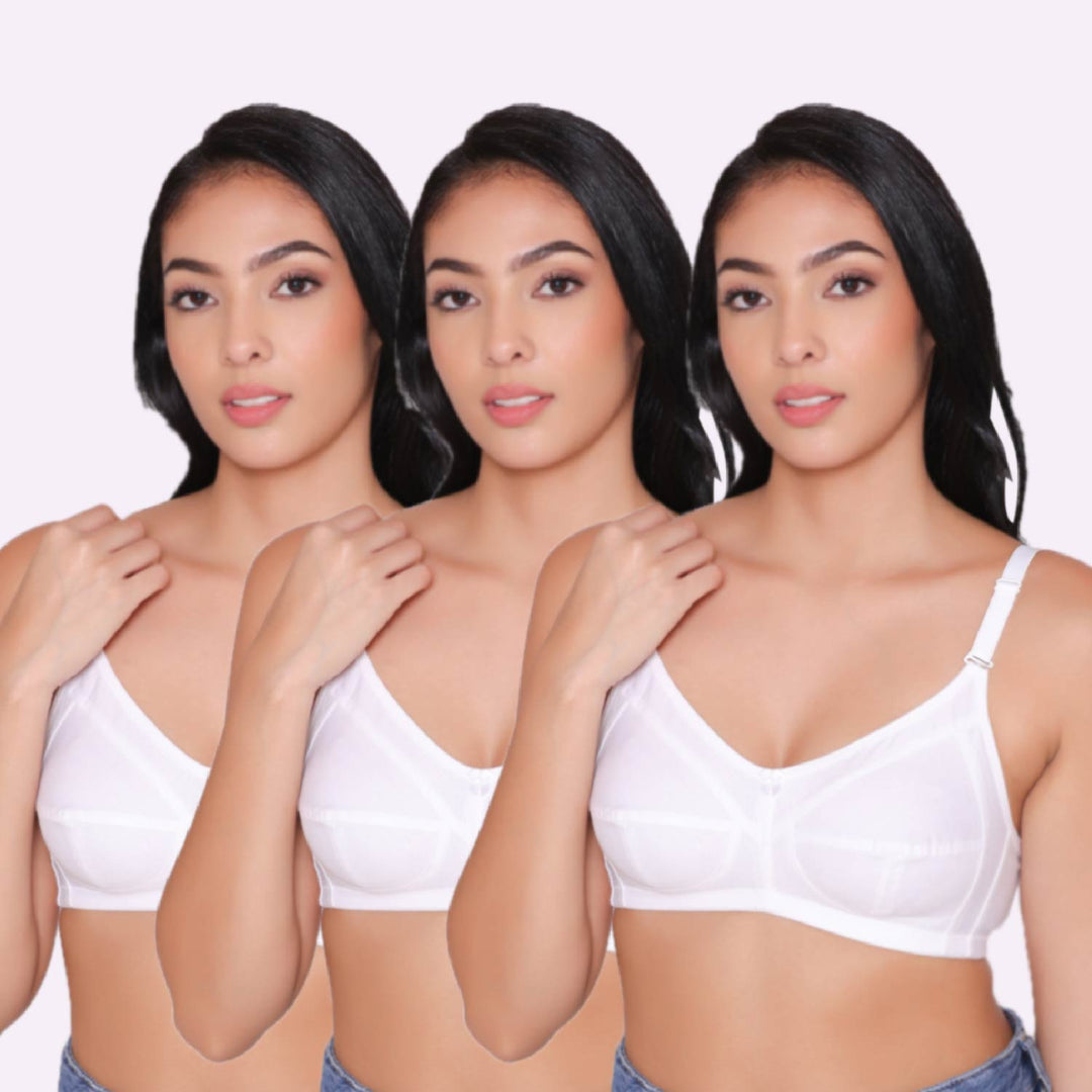 Women's Non Padded Non Wired Full Coverage Bra with No Spillage (Pack of 3)-ELSA