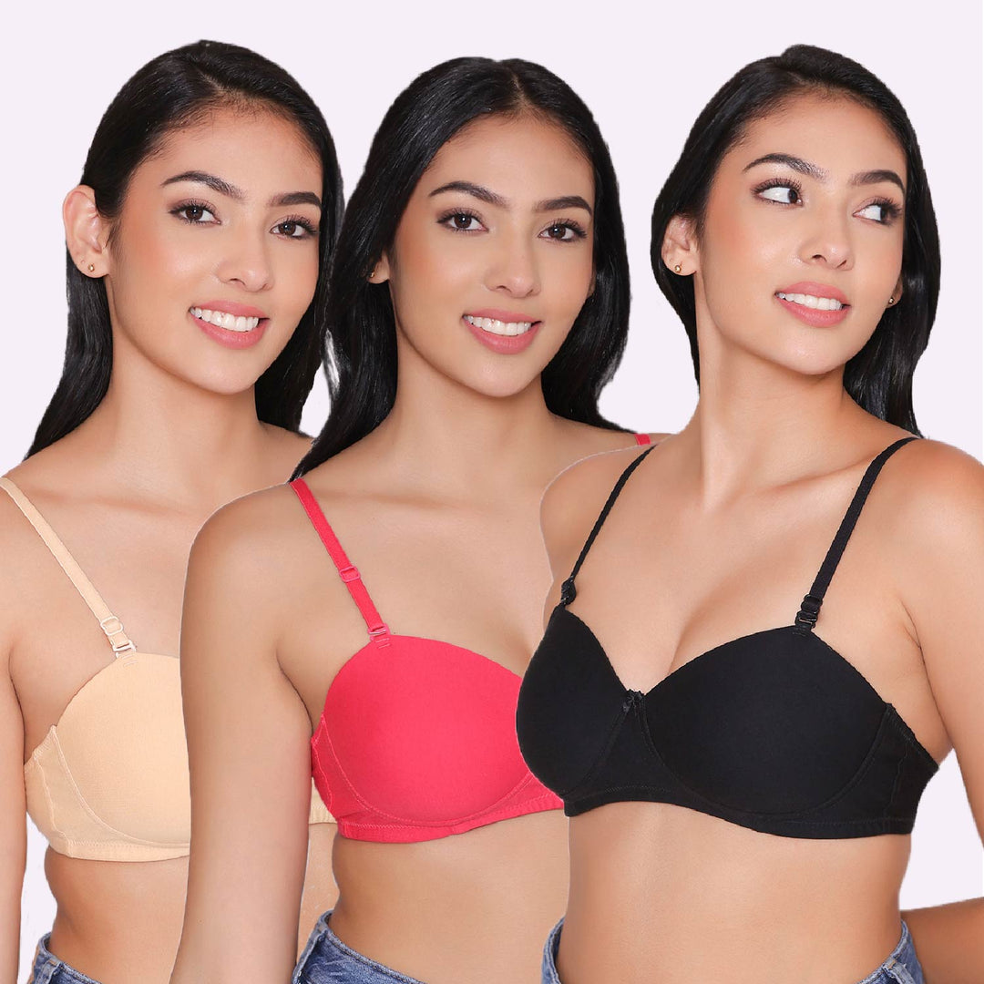 Women Lightly Padded Non Wired Tshirt Bra (Pack of 3)