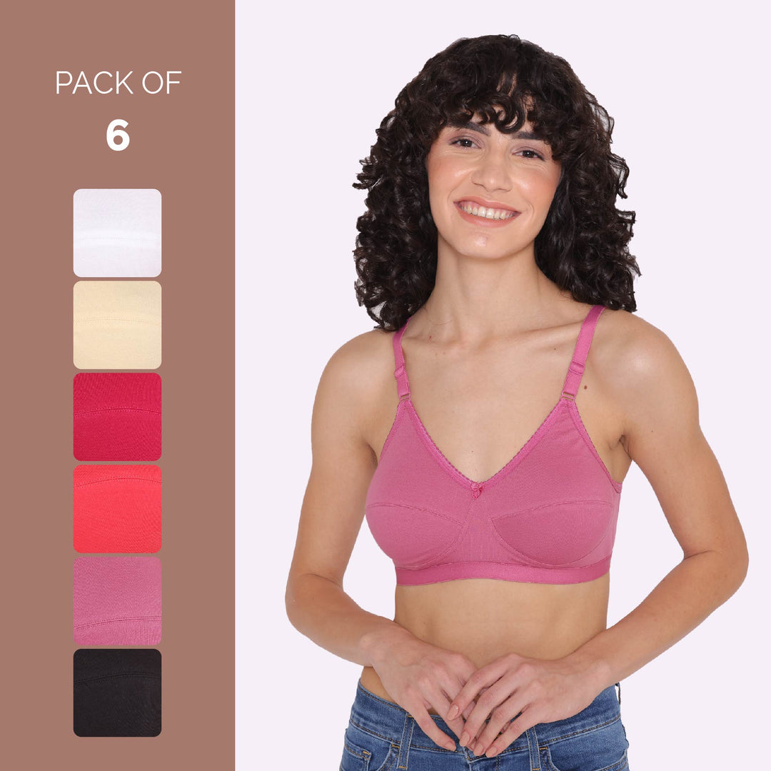 Women's Non Padded Non-Wired Regular Bra-RIO Combo of 6