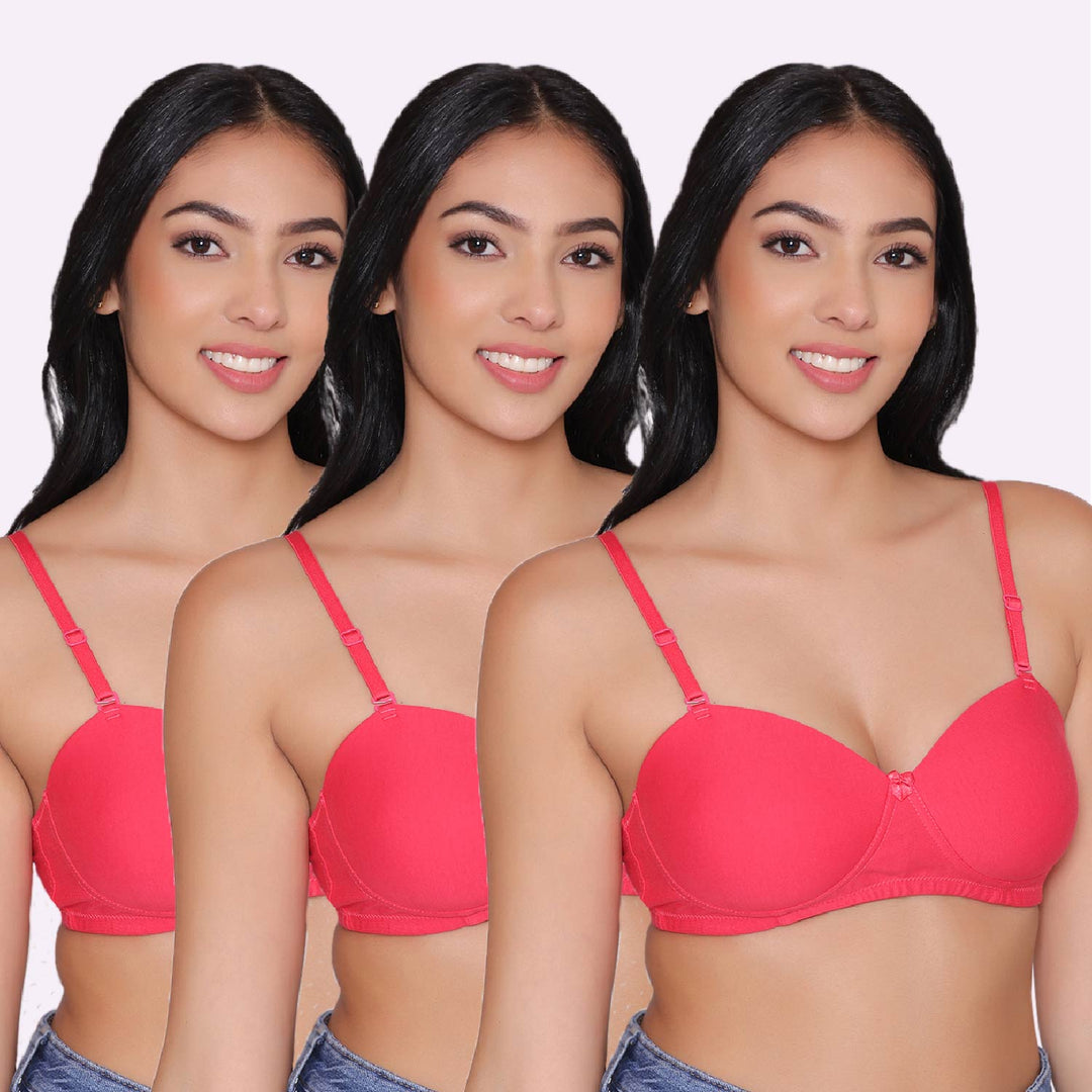 Women Lightly Padded Non Wired Tshirt Bra (Pack of 3)
