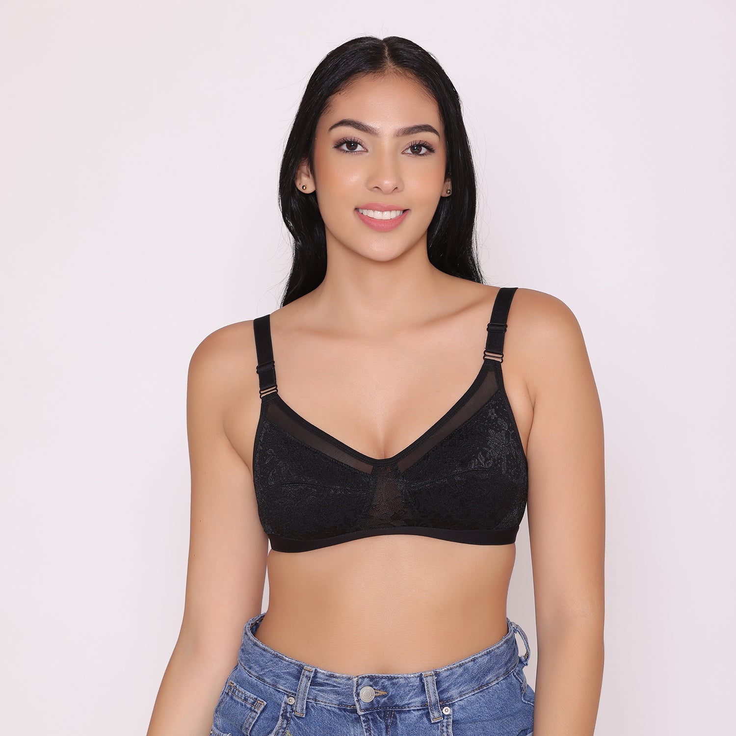 This is a non padded bra that gives ultimate support to your breasts. If you're someone who experiences side spillage or top spillage, this full-coverage bra is the ultimate solution to your problem. Panelled with a net shaper on top, It gives you a stylish look. The cups provide maximum coverage and offer no spillage. This is an everyday wear bra & can be paired with all your formal, casual, western & ethnic outfits. The bra features non-wired cups and hence provides a poke-free experience. This is a full coverage bra for daily use which complements all your body-hugging dresses nicely such as T-shirts, fitted tops, one-piece dresses, etc. This bra also works well under blouses, Kurti, suits, saree, Anarkali, etc.