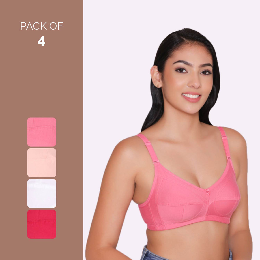 Women's Non Padded Non-Wired Regular Bra (Pack of 4)-ZOE