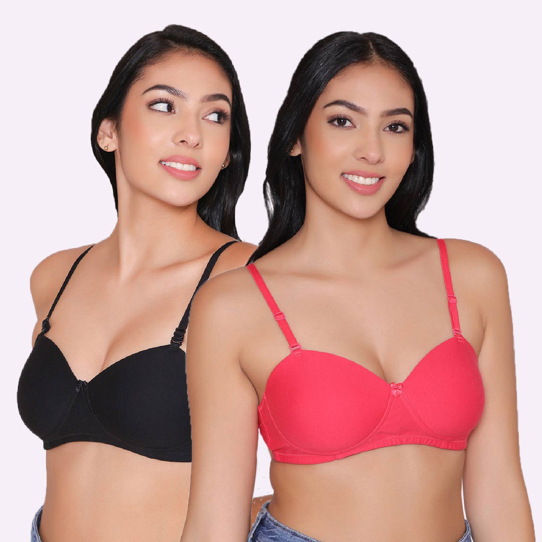 Women's Padded and Non Wired Full Coverage T-Shirt Bra (Pack of 2)-LILY
