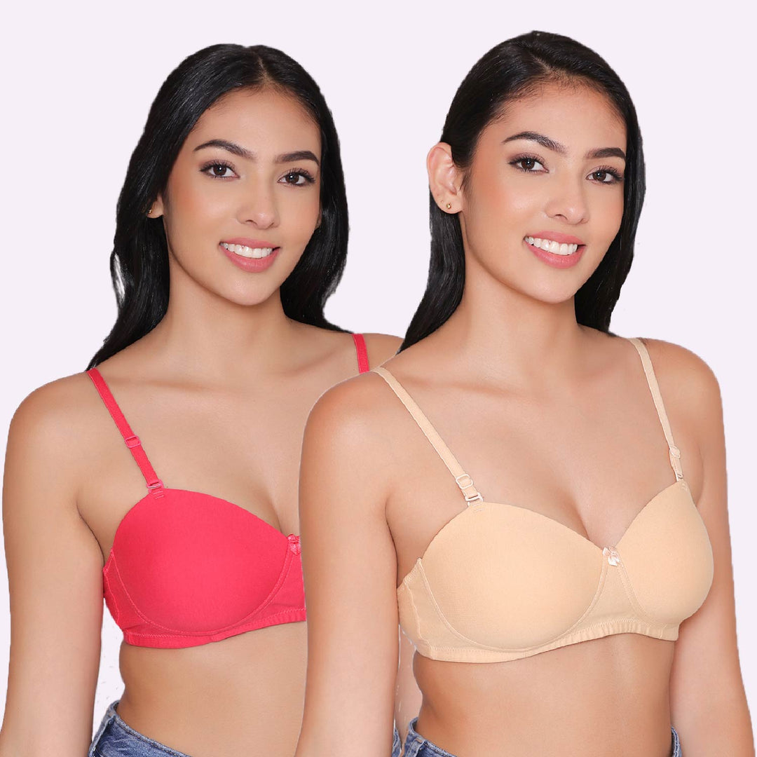 Women Lightly Padded Non Wired Tshirt Bra (Pack of 2)-ROMI