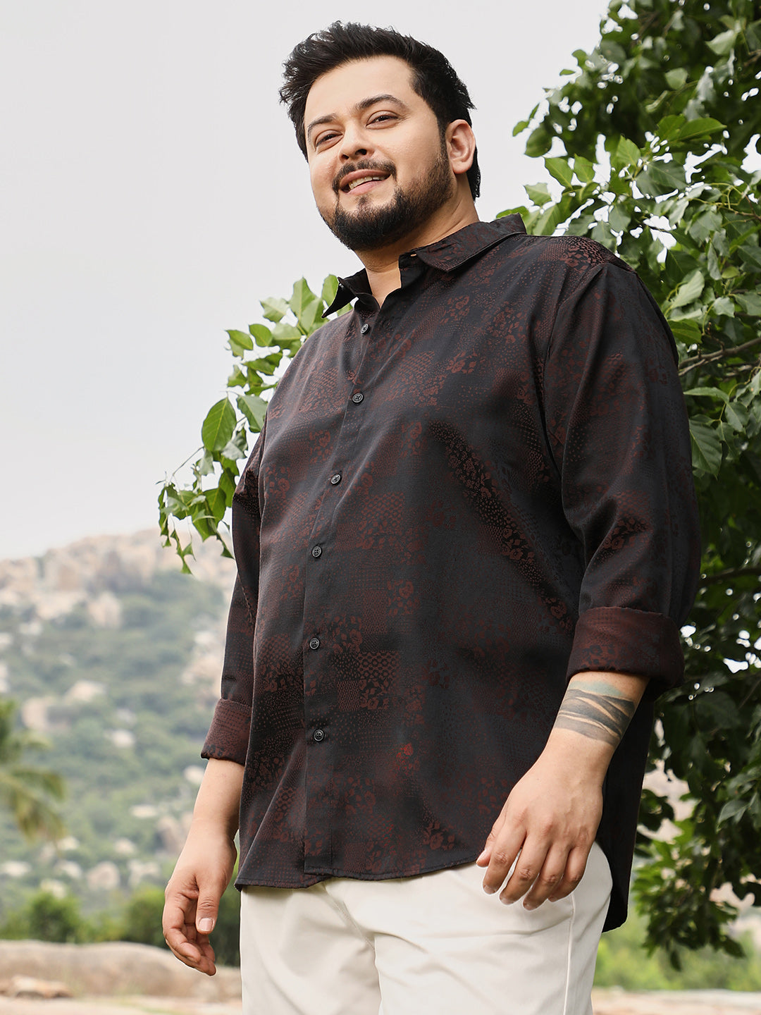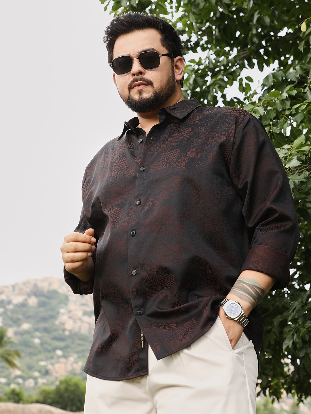 Dark-Tone Flora-Block Jacquard Shirt – Parfait Pluss