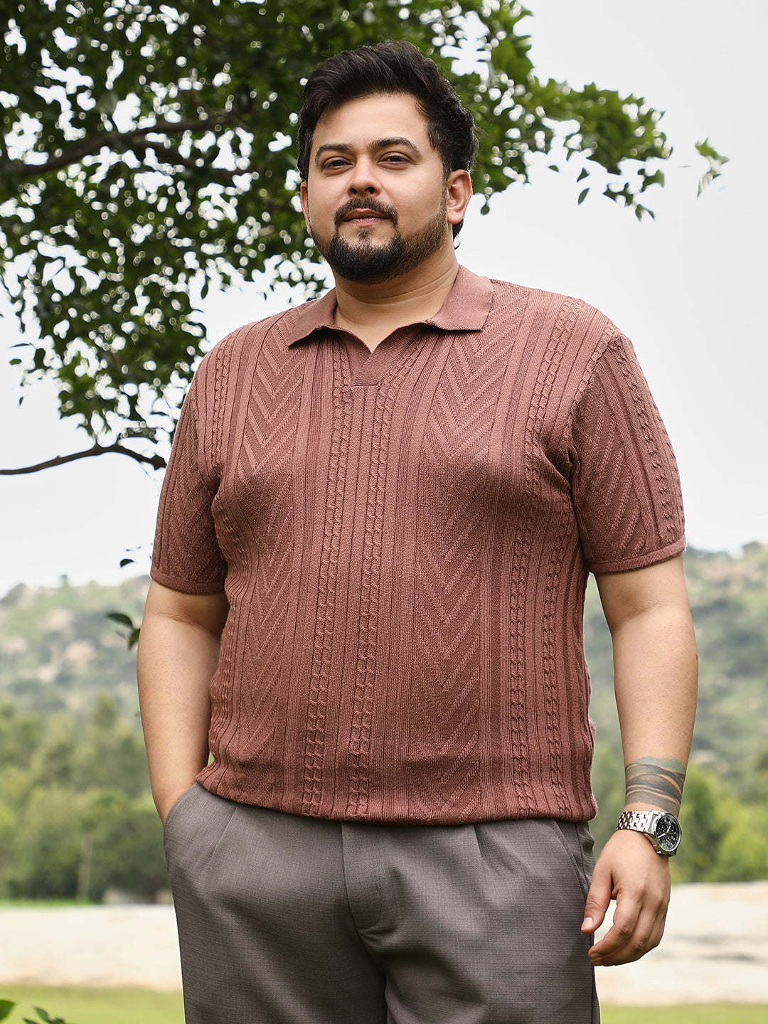 Geometric-Textured Polo T-Shirt – Parfait Pluss