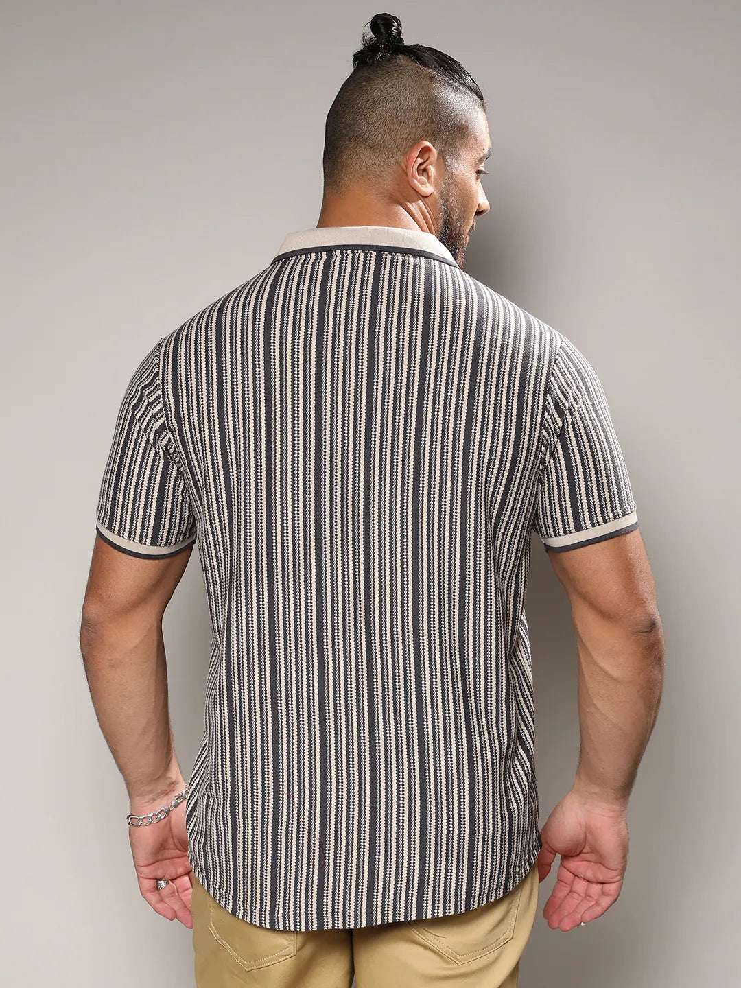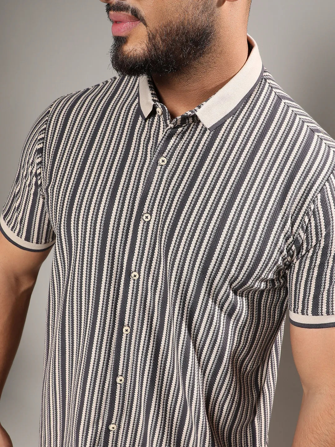 Light Grey & Navy Blue Contrast Knitted Shirt