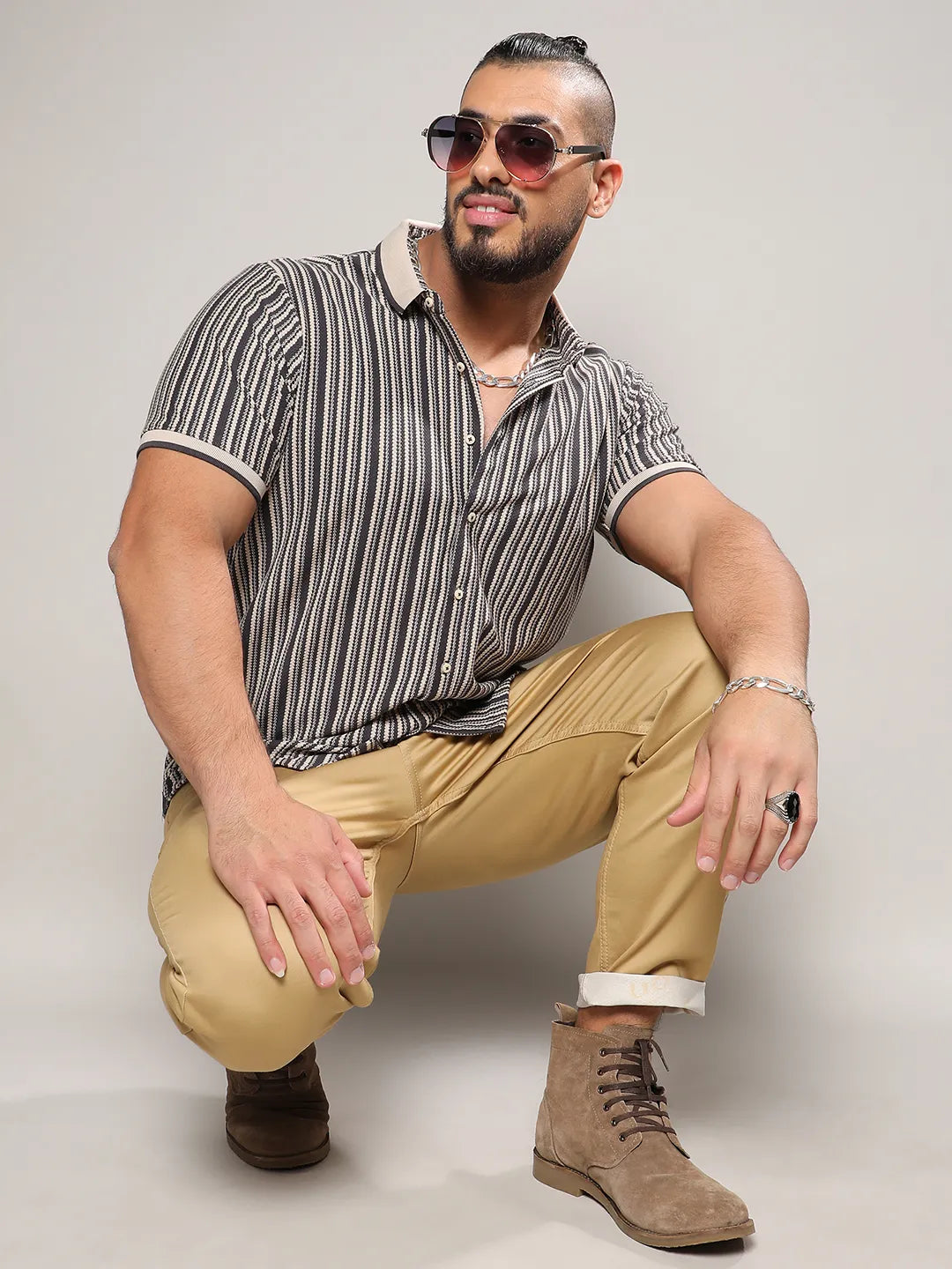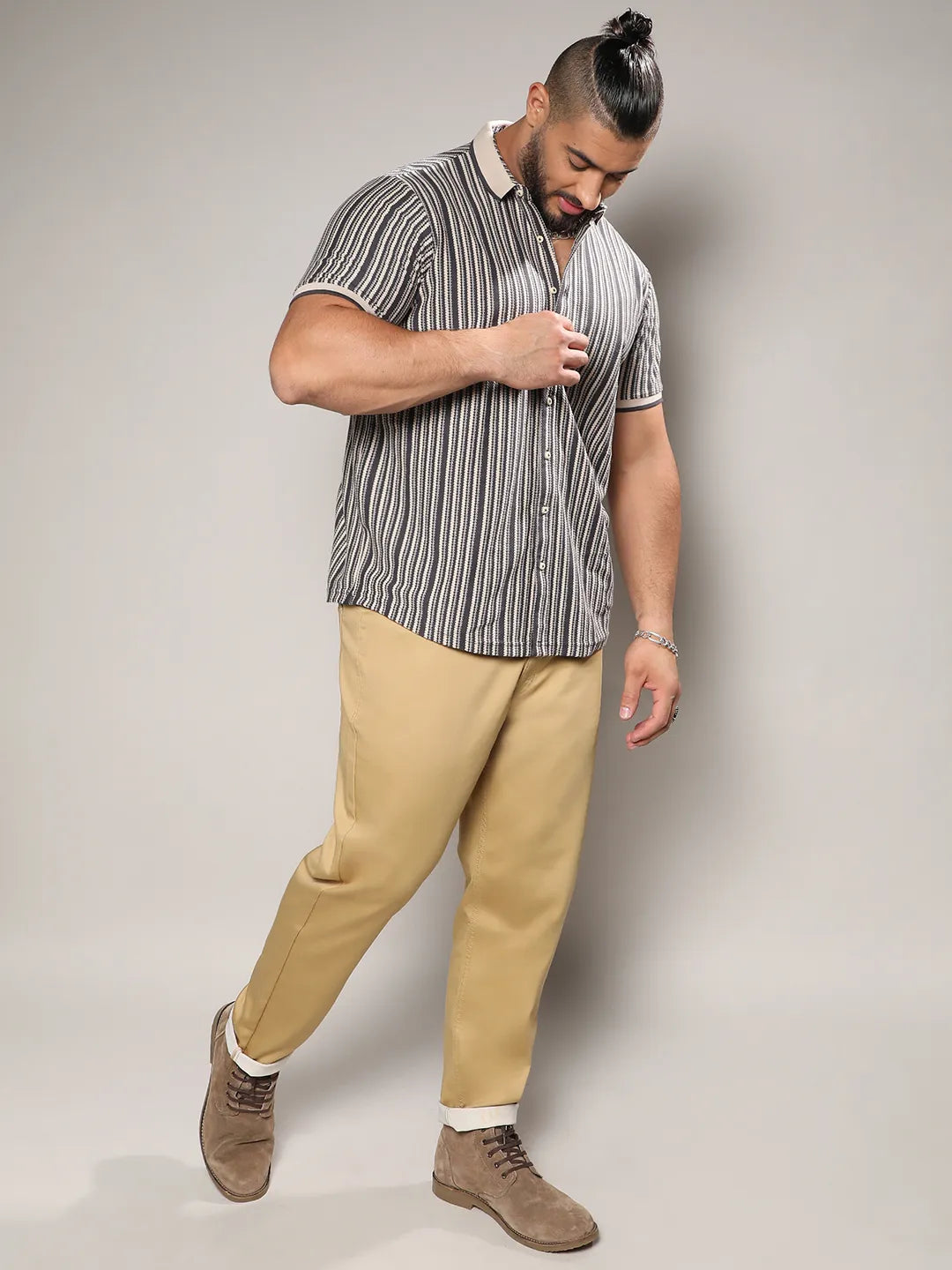 Light Grey & Navy Blue Contrast Knitted Shirt – Parfait Pluss