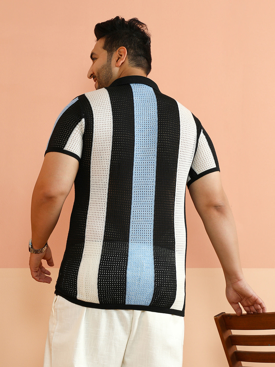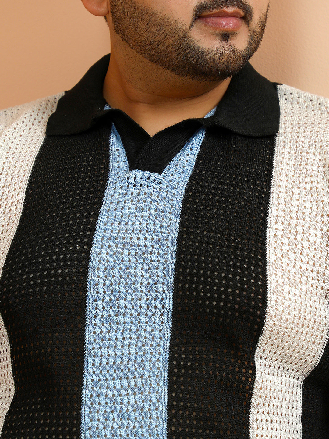 Panelled Open-Knit Polo T-Shirt – Parfait Pluss