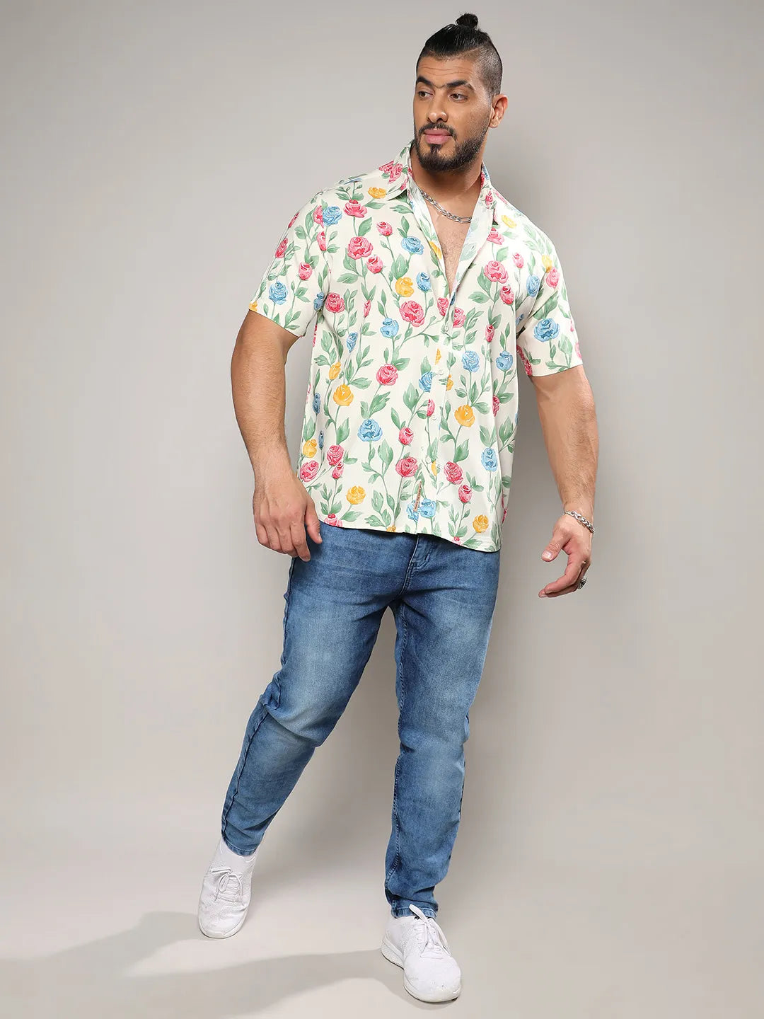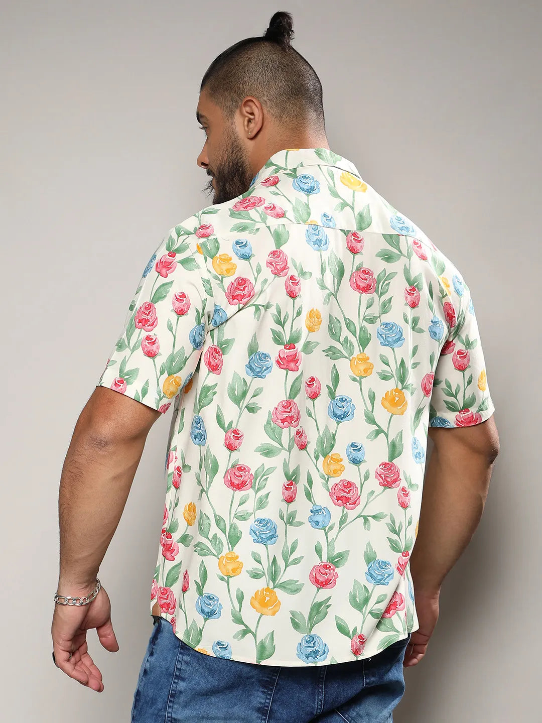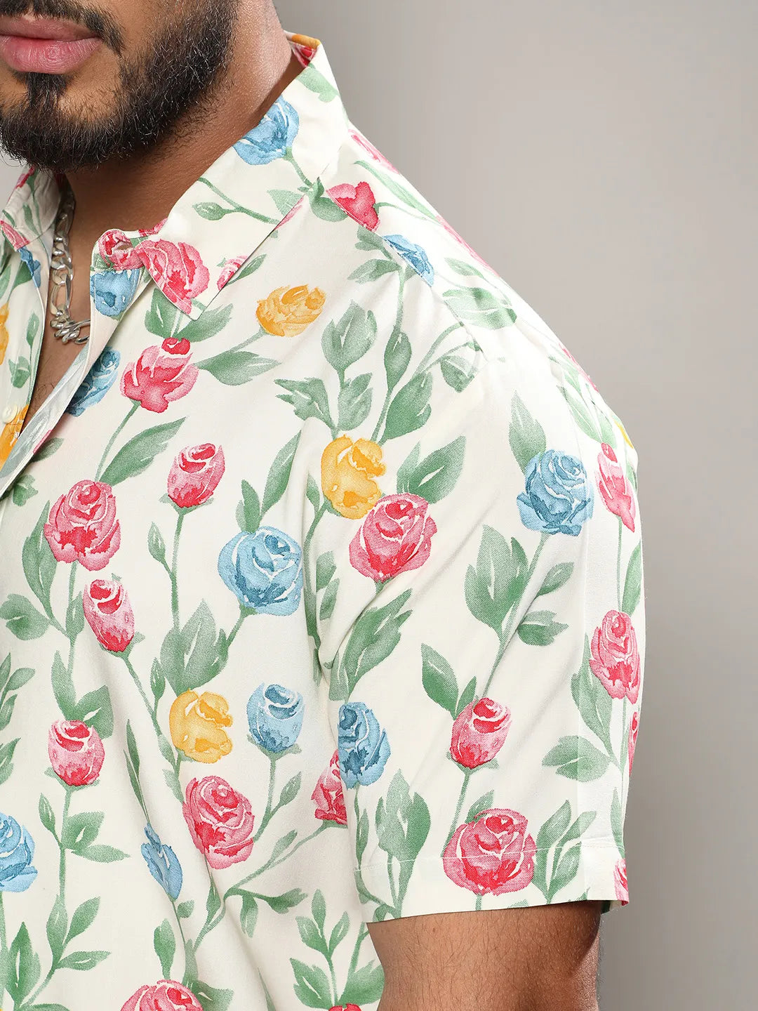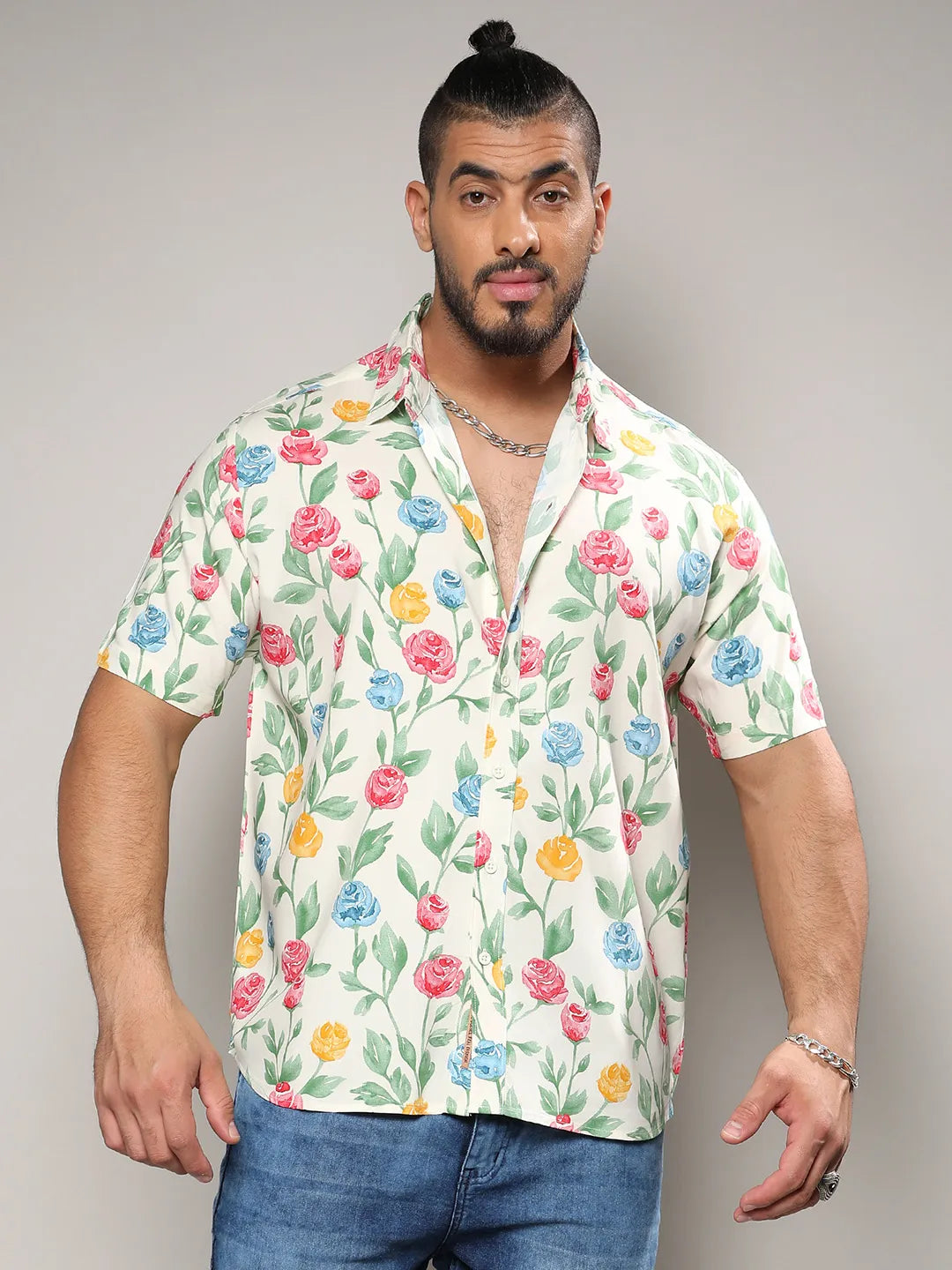 Our plus size men shirt has a rose garden print in yellow and red colour.
