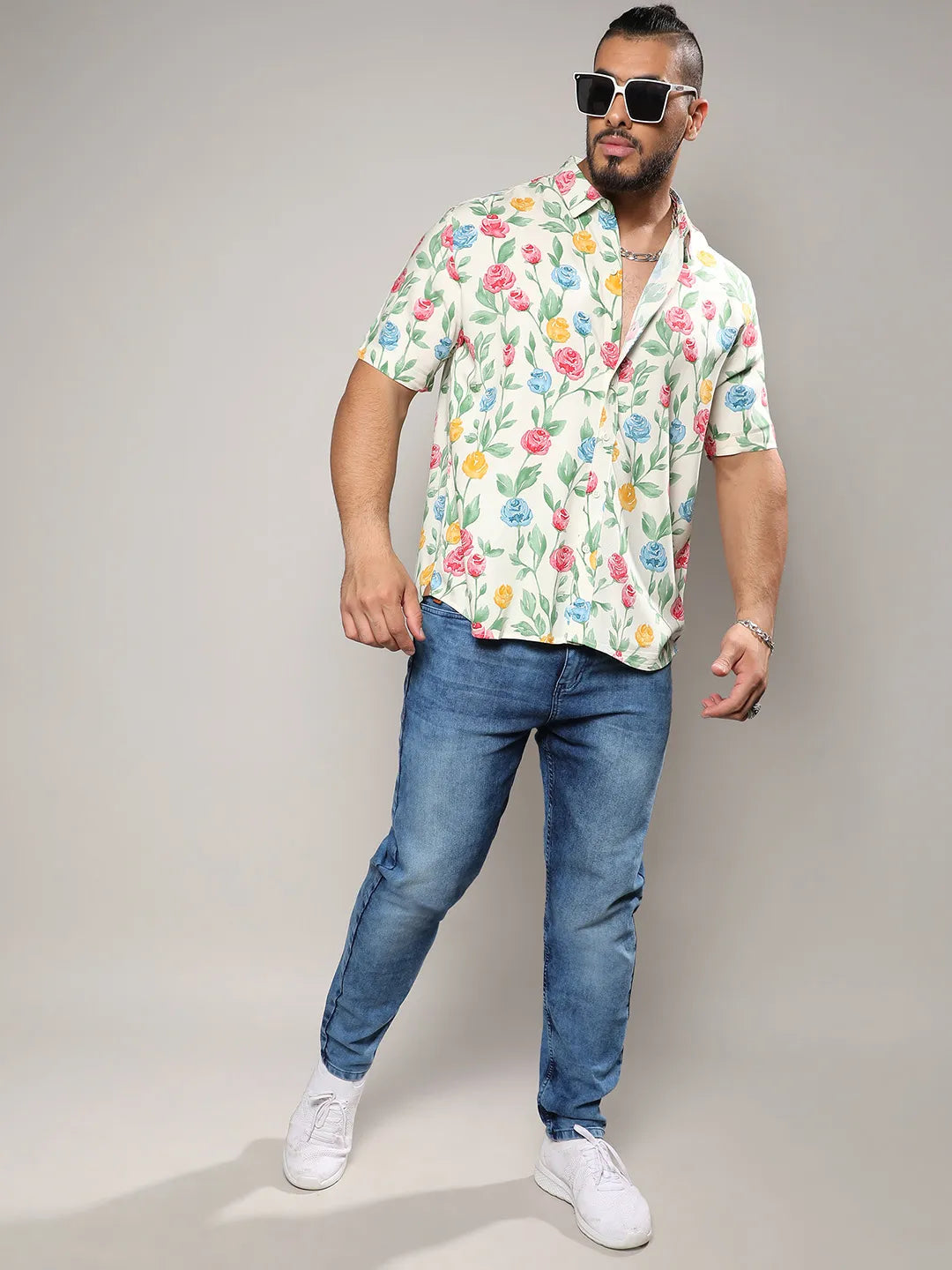 Pair the Rose Garden Print Shirt with tailored dark jeans and polished leather shoes for a casual yet chic vibe.