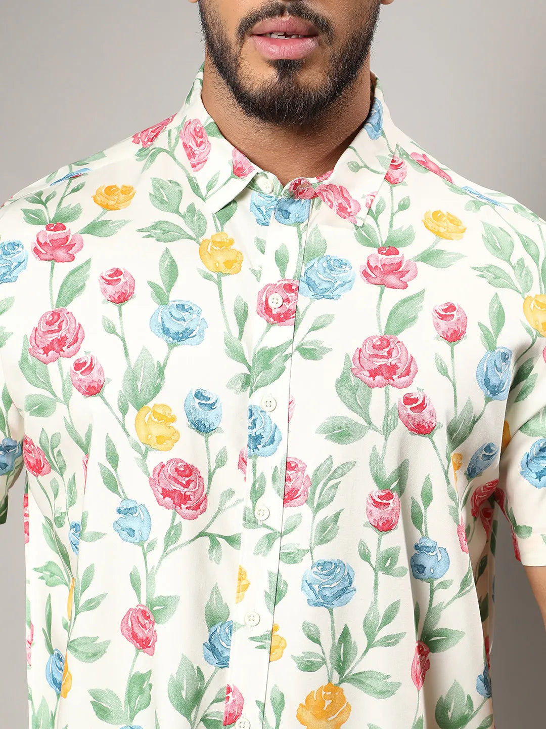 The Rose Garden Print Shirt is suitable for casual outings, brunches, and semi-formal occasions.